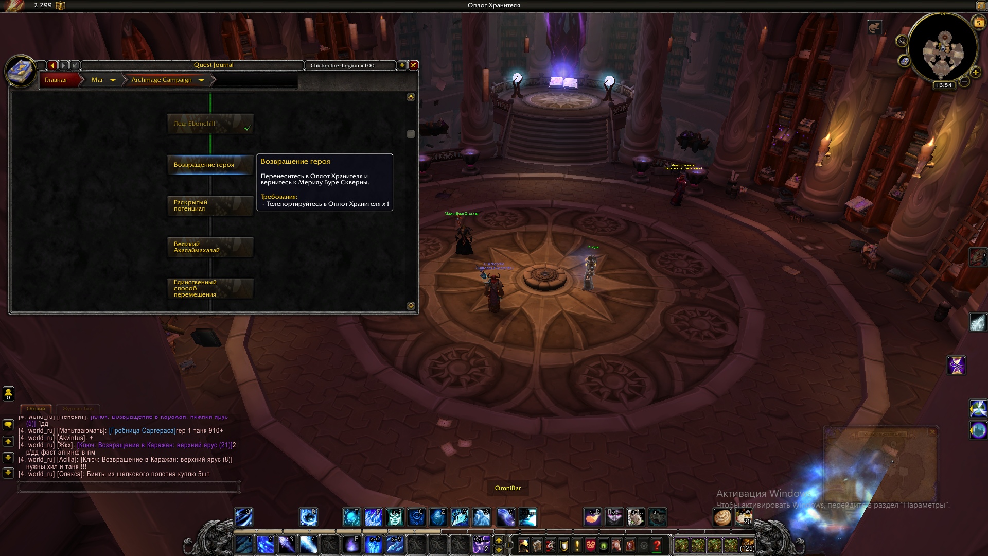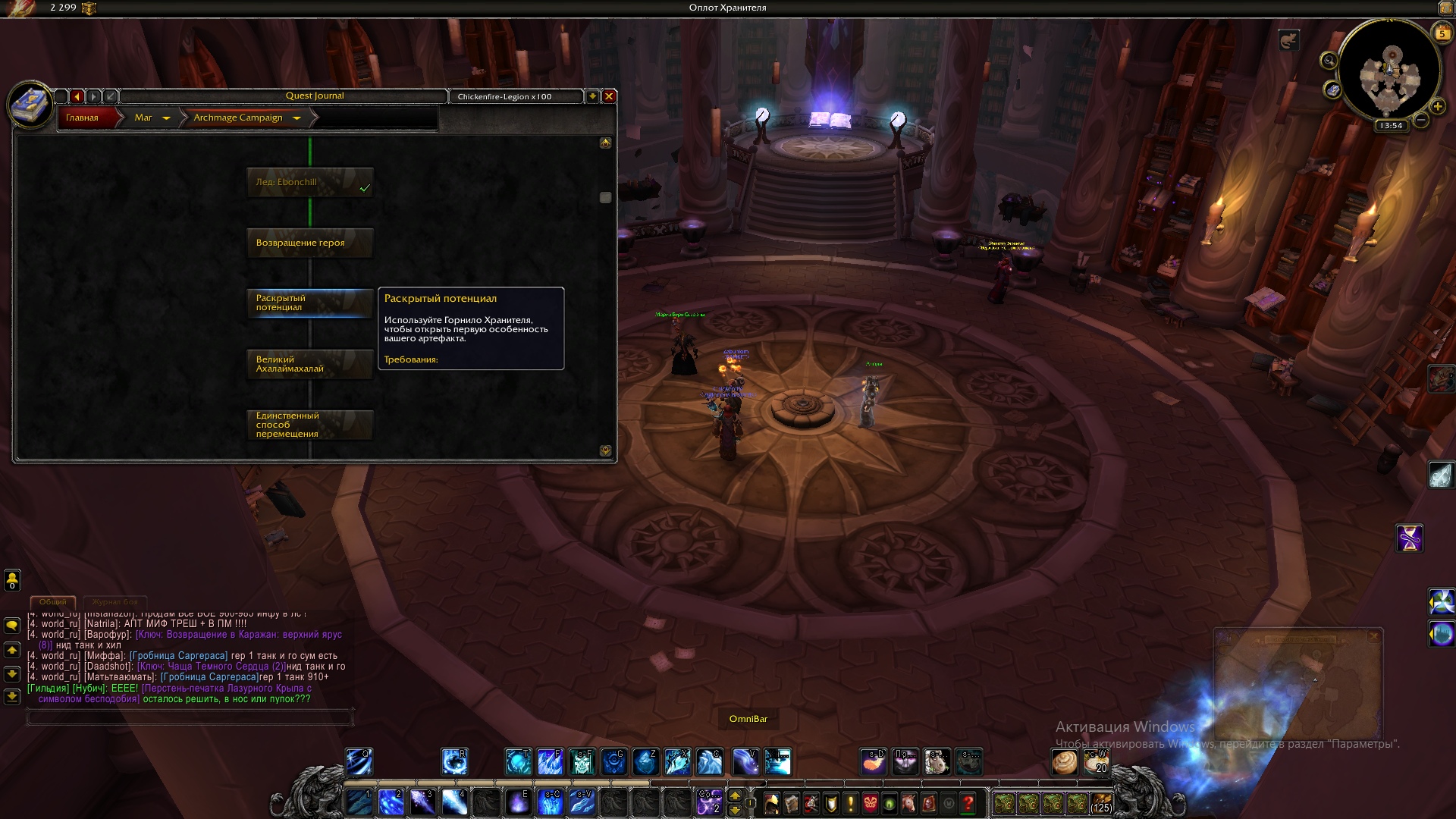 Но все равно не пойму, квесты, которые вы указали, у меня не отображены. По аддону, который вы скинули, показывает, что следующий кв должен быть - телепортация в оплот, следом прокачать артефакт 1 раз, но у меня арт прокачан уже до 64 |