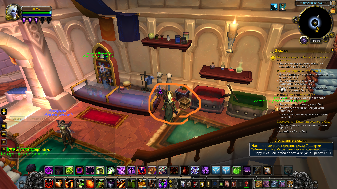 | Steps To Reproduce | Цепочка квестов портняжного дела. Квест Тайные методы работы с шелковым полотном, берётся в Новом Даларане у NPC Танитрия Учительница портняжного дела. | ||||