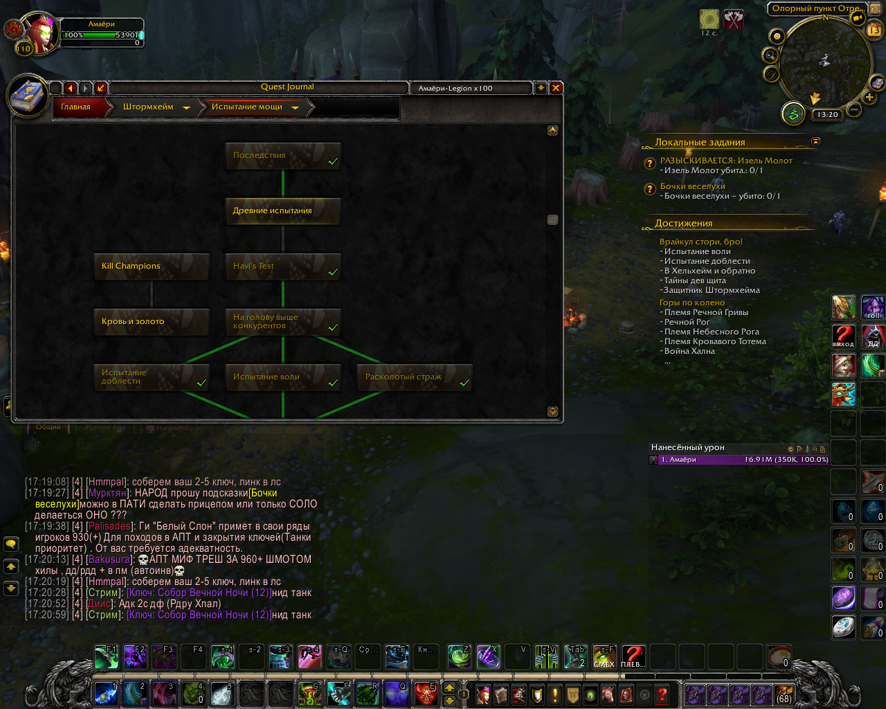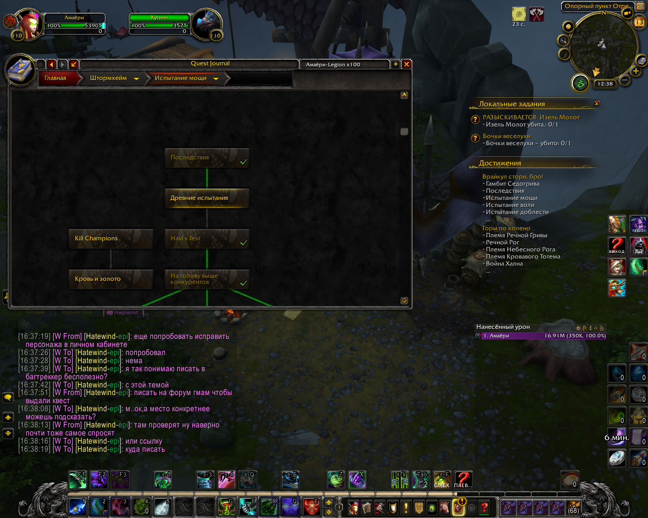 Здравствуйте. Мы с Амаери наверно час ковырялись проверяли квесты. К сожалению, не пришло в голову проверить еще цепочку квестов первого критерия за Орду. а ведь сто процентов, что первый критерий был выполнен за Альянс, раз и квест https://ru.wowhead.com/quest=38210 тоже выполнен. Возможно у https://ru.wowhead.com/npc=97305 квест https://ru.wowhead.com/quest=38459 появляется только когда засчитан первый критерий для Орды. Я не додумался сразу спросить у ТСа , делал ли он заново квесты первой цепочки на Орде, начиная с https://ru.wowhead.com/quest=44701/%D1%88%D1%82%D0%BE%D1%80%D0%BC%D1%85%D0%B5%D0%B9%D0%BC который берется в Штормхейме у https://ru.wowhead.com/npc=107460 . если не делал - это может быть спасением, так как первый критерий не пересекается у Альянса и у Орды. Во всяком случае попробовать можно. |