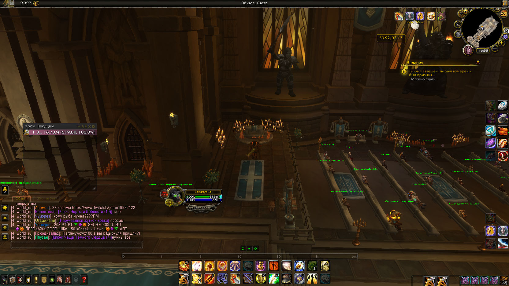 А на каком этапе у вас оплот? Скачайте этот аддон и скиньте скриншот вашего оплота (На чем вы остановились, у меня сделан фул оплот, выглядит это вот так http://egammi.net/image/Stxb ) Квест работает http://egammi.net/image/Stx9 |