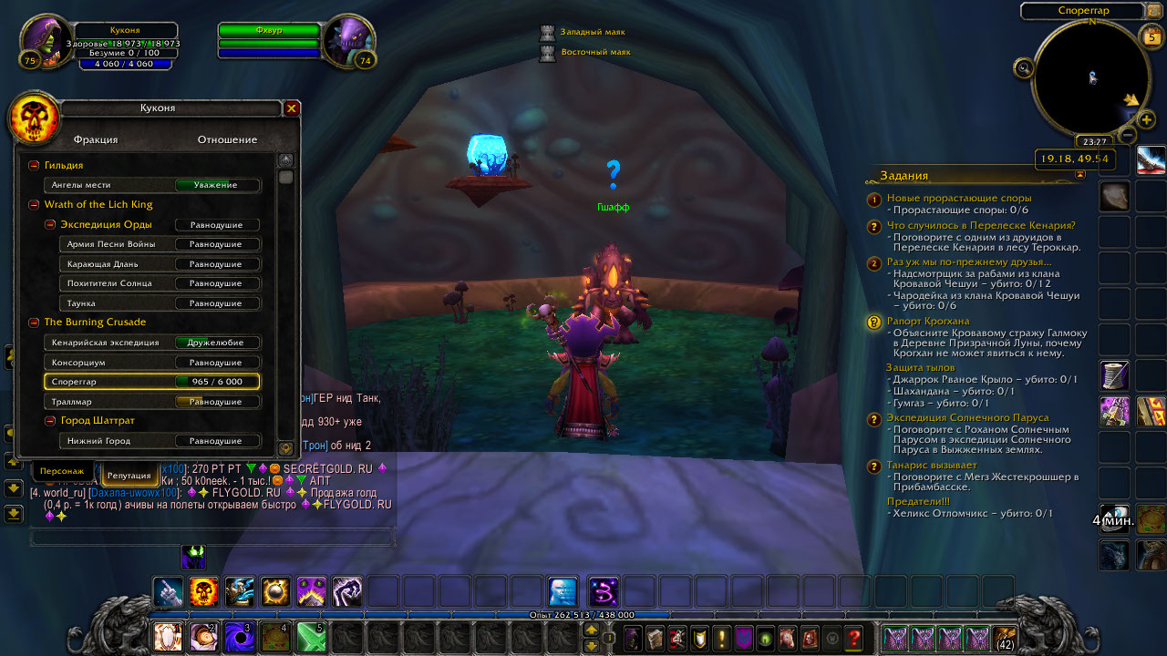 Здравствуйте. Уважение или почтение. Поскольку до превознесения добивал уже после того как закрылась сюжетка. Я читал комменты с вовхеда, когда готовил текст предыдущего сообщения. Там неоднозначно написано. так как комменты датированы 4.3.4 и почти сразу 8.0.1 . На 4.3.4 квест выдается на уважении, на 8.0 дружелюбие. Насчет квестов в https://ru.wowhead.com/?zone=3716 - в смысле сбора гибискуса - есть такой интересный момент - заходите в инст, если уровень позволяет (110) просто идете мимо мобов и собираете веточки. на круг получается 12-13 веточек. Последняя веточка в коридоре перед ластом. Если выполняет травник - Кровавый гибискус виден как растение на радаре. Если лвл не позволяет - просите кого то зачистить инст, потом остаетесь там. Полный круг сбора веточек с возвратом к началу - как раз достаточно чтобы отреспились веточки в начале инста. И так по кругу, пока не наберется нужное количество гибискуса. Потом просто сдать и все. Как вариант, если нужны еще и какие то предметы на транс - можно зачистить героик, потом нужное количество раз зачистить обычку, обновляя подземелья. О чем я не сказал сразу, но это подразумевалось - можно споткнуться на том, что выпал и был пропущен один из квестов цепочки, который открывается с достижением очередного уровня репутации. А также нужно учитывать тот момент, что все квестодатели в Спореггаре стоят внутри зданий - квесты на радаре видны серыми (укрытие) от того малозаметны, легко пропустить. Совет - включать на радаре отображение простых заданий, с преодолением очередного уровня репутации - проверять диалоги всех НПС в деревне. Фхвур в отличие от остальных появляется и ходит на краю деревни, почти на берегу озера. |