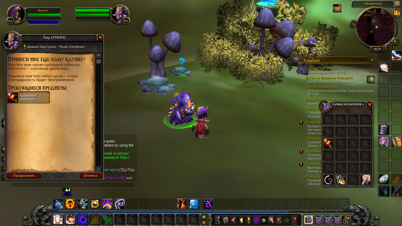 Всем привет! Спасибо, обязательно пробну скрипты, а локацию я несколько раз обегал по аддону. Буду искать. Кстати я наглухо застрял на квестах в ледяной короне, похоже достижения становятся недосягаемыми. Дружище Кармадон, Давай без или, если есть желание добраться до истины, то пробегись со мной паровозом. Я тебя прошу помочь, Заодно и сам выяснишь , какая нужна репутация. В описаниях четко сказано , что квесты даются с дружелюбия и это я уже сам проверил, Мне пришлось ее добивать , чтобы начать эту цепочку. Где бы ни прятался нпс, его аддон везде увидит. Фхукер у меня на скрине, поэтому мне его искать не надо. Спасибо. Доберусь до истины и все вам расскажу. |
