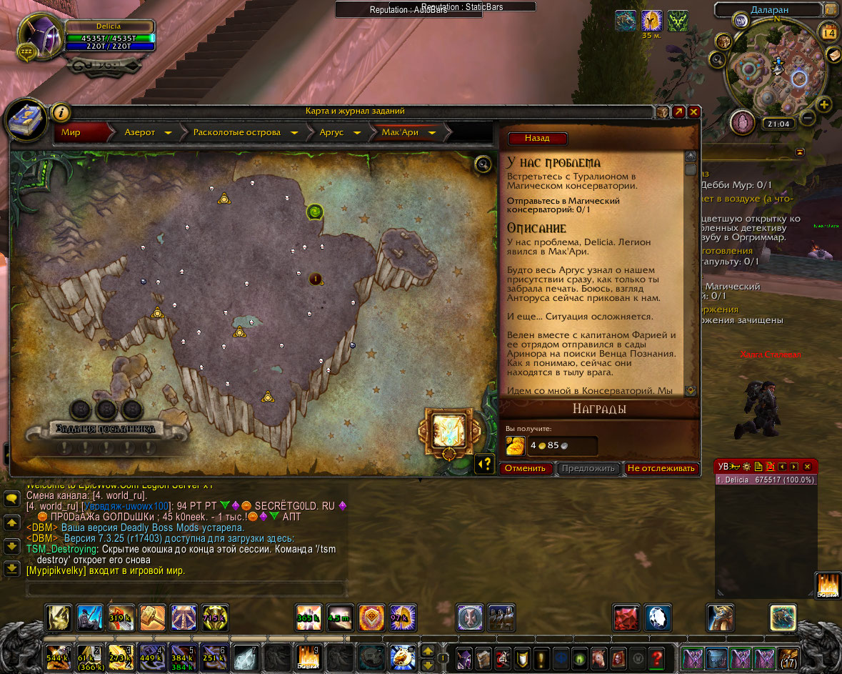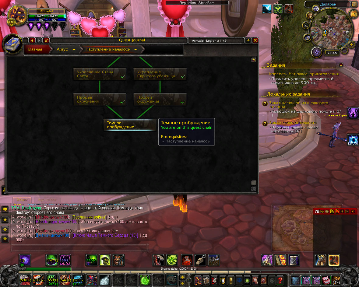У вас установлен аддон BtwQuest Legion? |
