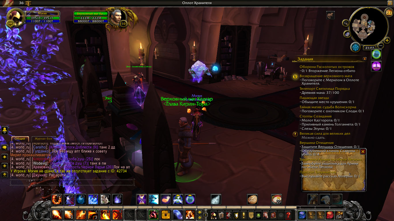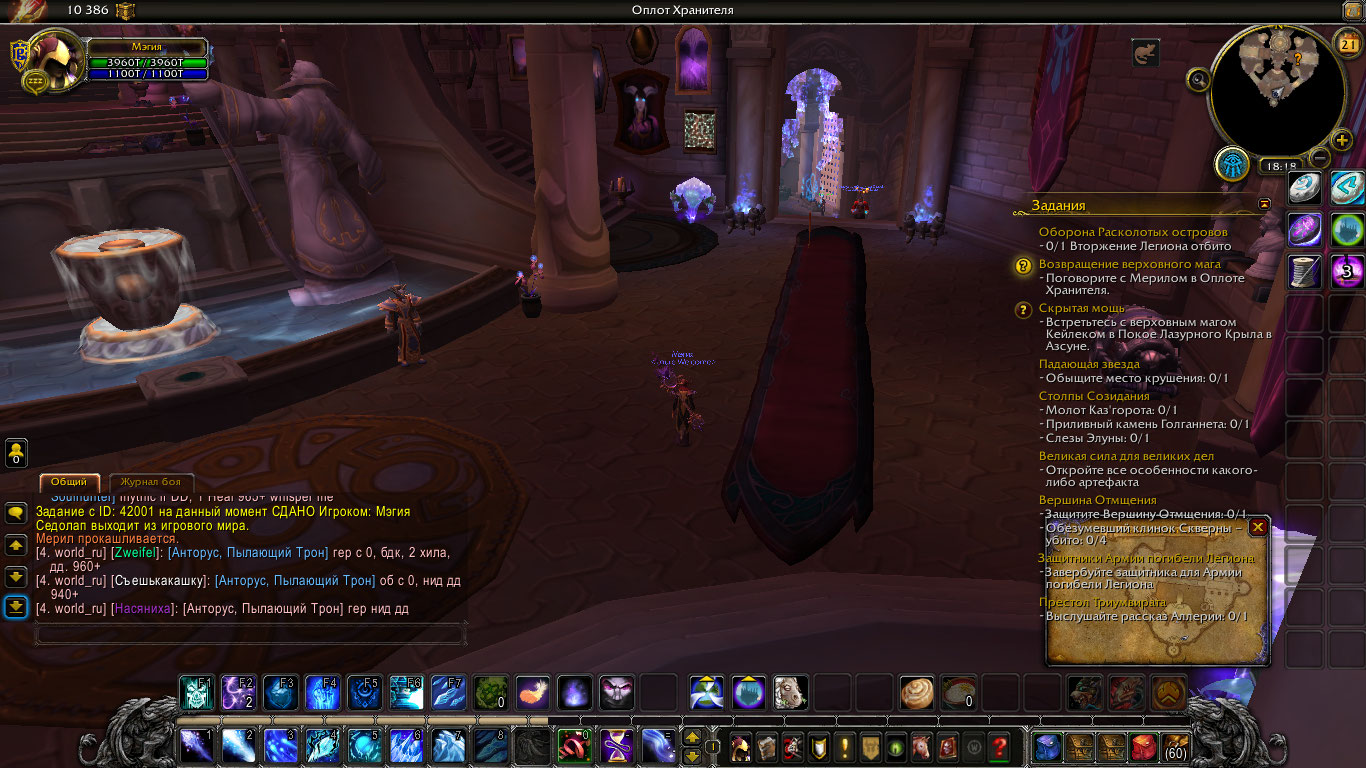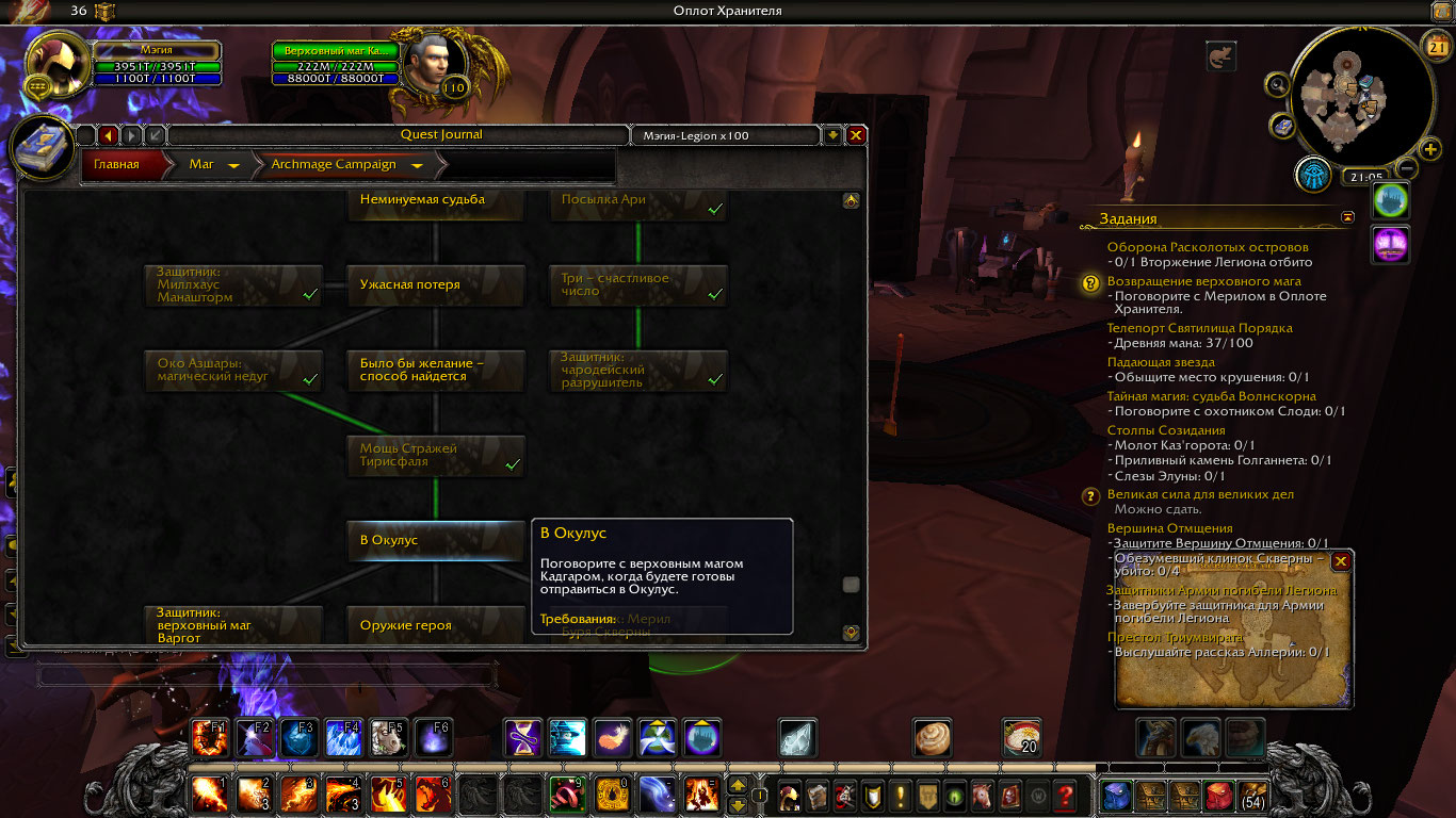 Давайте по порядку. 1. У вас выполнен 42001 это первый квест цепочки на аркана, вам нужно взять https://ru.wowhead.com/quest=42006/ , вот тут http://egammi.net/image/SxFk 2. https://ru.wowhead.com/quest=46290/ квест на доп защитника. Что бы его сдать должен был выполнен или взят https://ru.wowhead.com/quest=42734/ Проверьте .q s 42734 И скиньте скриншот На каком этапе у вас оплот? P.s скинул вам аддон BtWQuestsLegion. Он может вам разобраться в цепочках. http://egammi.net/image/SxFV вот как выглядит оплот в нем |