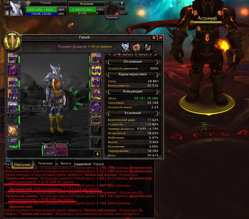 Здравствуйте, vitya_theyo2008, Ожидать починки? p.s Также выявил небольшой баг в работе (хз мб ваши разрабы запихнули со словами "и так сойдет") В общем суть бага в том, что иногда, срабатывает БЛОК ВОИНА. (а я паладин) т.е урон блочиться на 100%. Это бывает очень редко примерно 1 атака в 15-20 мин и то незначительная. Но в целом я полагаю у паладина почему-то стоит блок воина. Как это работает я не понимаю и не хочу =) Просто заметил такое, мб поможет в решении Также сделал тест с % опустил блок < ниже Парирования на 1-3% И вместо блока стало срабатывать оно. Но редко и не понятно. И вообще оно разве работает? О_о |