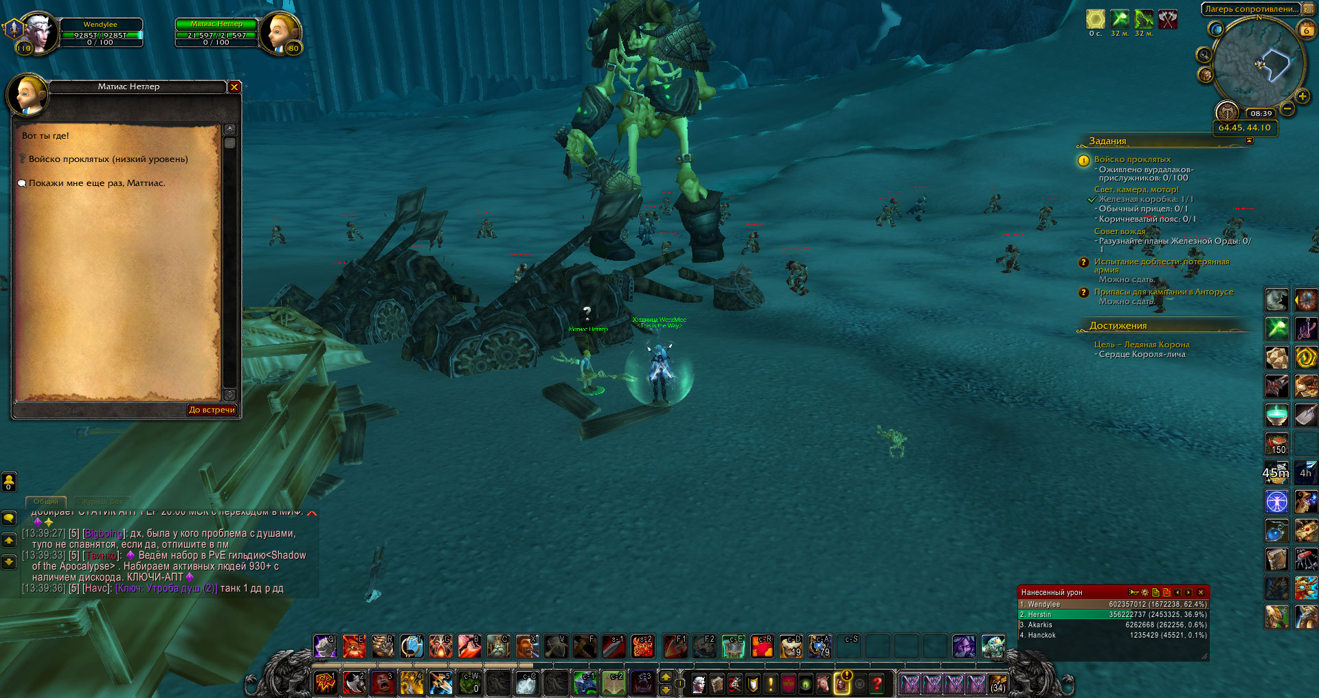 | Description | Здраствуйте, спасибо что починили квест Битва за вершину рыцарей, но квест Войско проклятых который не однократно в багтрекере появлялся, к сожалению не работает, необходим он для критерия Сердце Короля Лича. Невозможно превращение в Артаса. | ||||