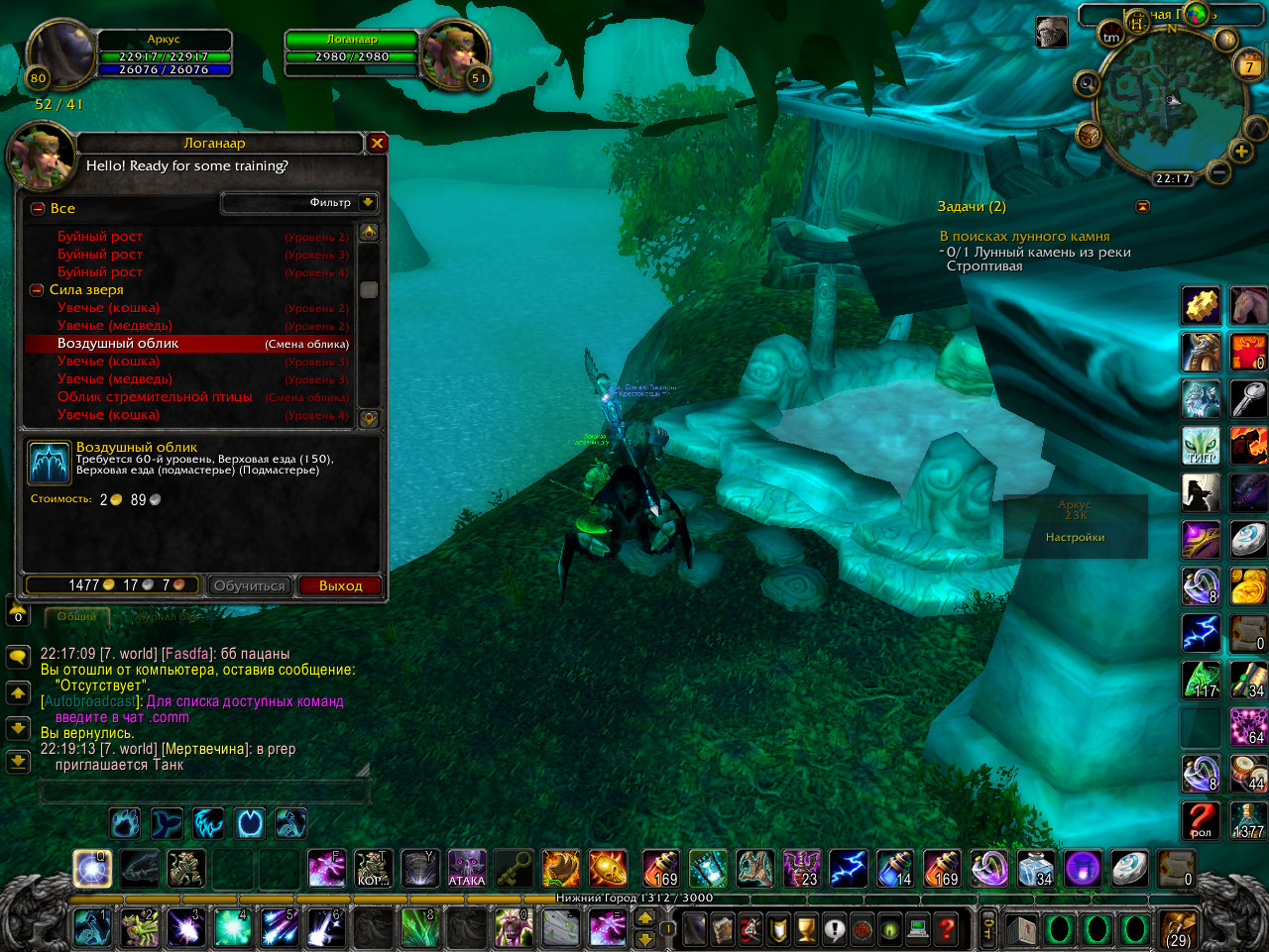 BotSide - после переноса на новое ядро сбрасывался навык верховой езды, но на маунт сесть можно было, если он был ранее выучен. Люди даже писали об этом на форуме. И я тебе тоже советую посмотреть на каком маунте сидить игрок. Это крассный киражанский танк, я не видел что бы uwow разблокировал ограничение на перемещении на нём в не зоне "анкираж". И если посмотреть на иконку, то видно что она не соответствует маунту, а значит это прописной маунт (донат), и на него могут не распространяться ограничения из отсутствия прокачанного навыка верховой езды. И да, сам лично сталкивался с этим багом на друиде. После переноса сразу делал ТП в луную поляну и походной форме бежал обучать скилы. Птица не бралась так как навык верховой езды был равен "0". И на будущие - не советую позориться тебе! |