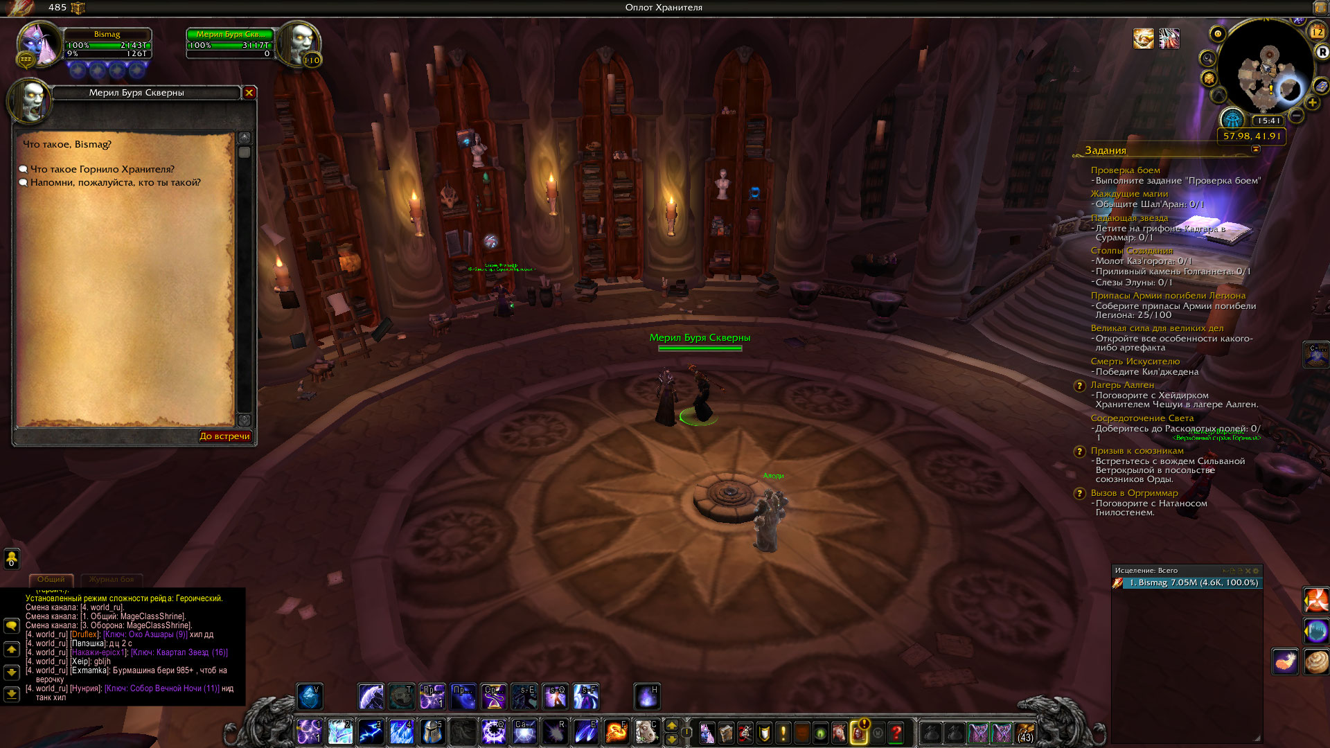 Проверьте квест .q s 44310 https://ru.wowhead.com/quest=44310/%D1%82%D1%80%D0%BE%D0%B9%D0%BD%D0%BE%D0%B5-%D0%BC%D0%BE%D0%B3%D1%83%D1%89%D0%B5%D1%81%D1%82%D0%B2%D0%BE и если не выполнено - посмотрите сначала этот квест у Мерил а также в книге в самом верху оплота. |