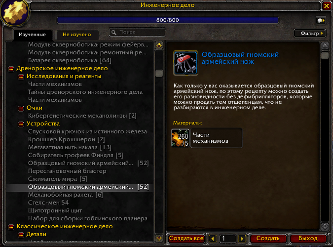 | Description | Не могу создать образцовый гномский армейский нож https://ru.wowhead.com/item=109253/%D0%BE%D0%B1%D1%80%D0%B0%D0%B7%D1%86%D0%BE%D0%B2%D1%8B%D0%B9-%D0%B3%D0%BD%D0%BE%D0%BC%D1%81%D0%BA%D0%B8%D0%B9-%D0%B0%D1%80%D0%BC%D0%B5%D0%B9%D1%81%D0%BA%D0%B8%D0%B9-%D0%BD%D0%BE%D0%B6 Пишет "пока невозможно" Обучен инженерному делу Дренора и Легиона. Ларек в гарнизоне стоит. Остальные предметы, которым обучен, могу создавать | ||||