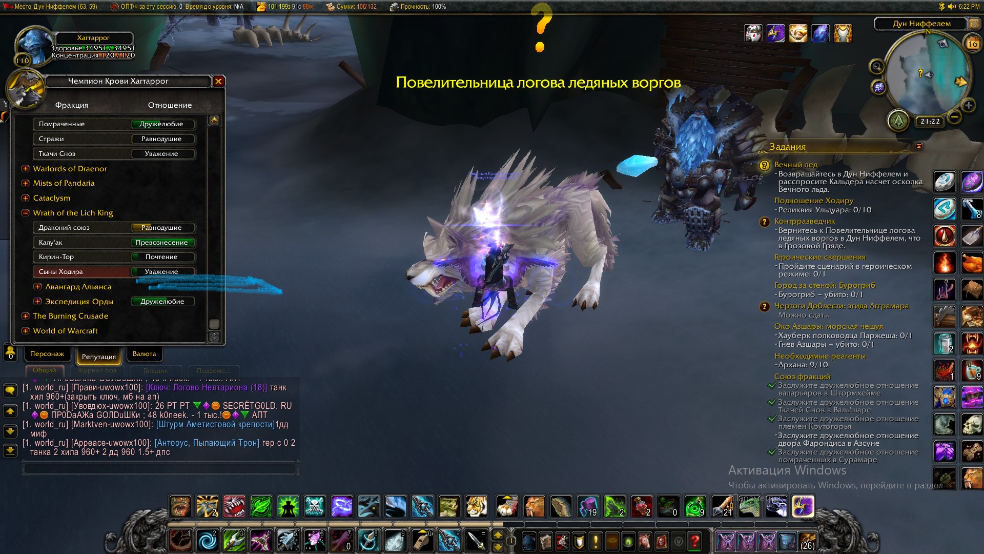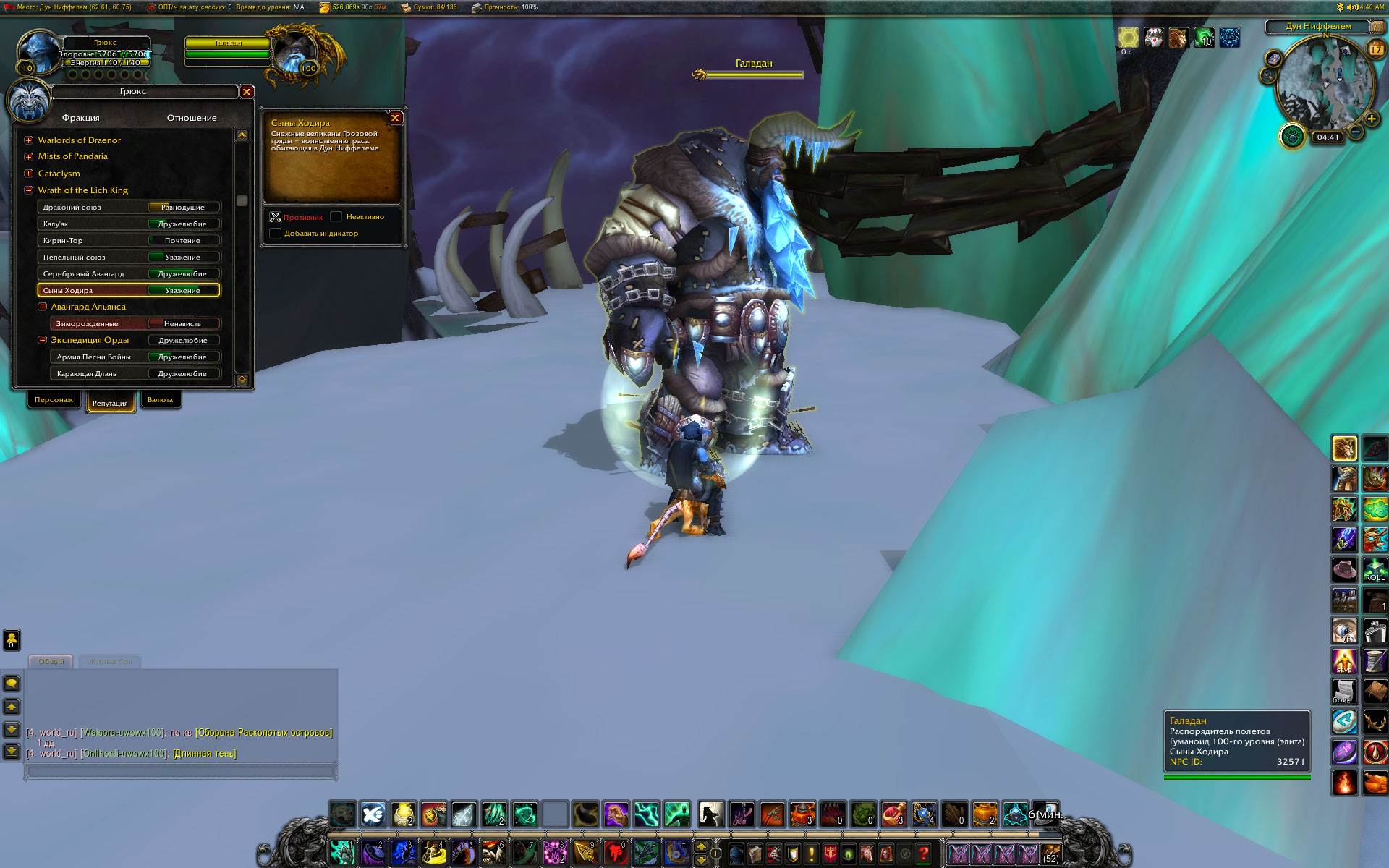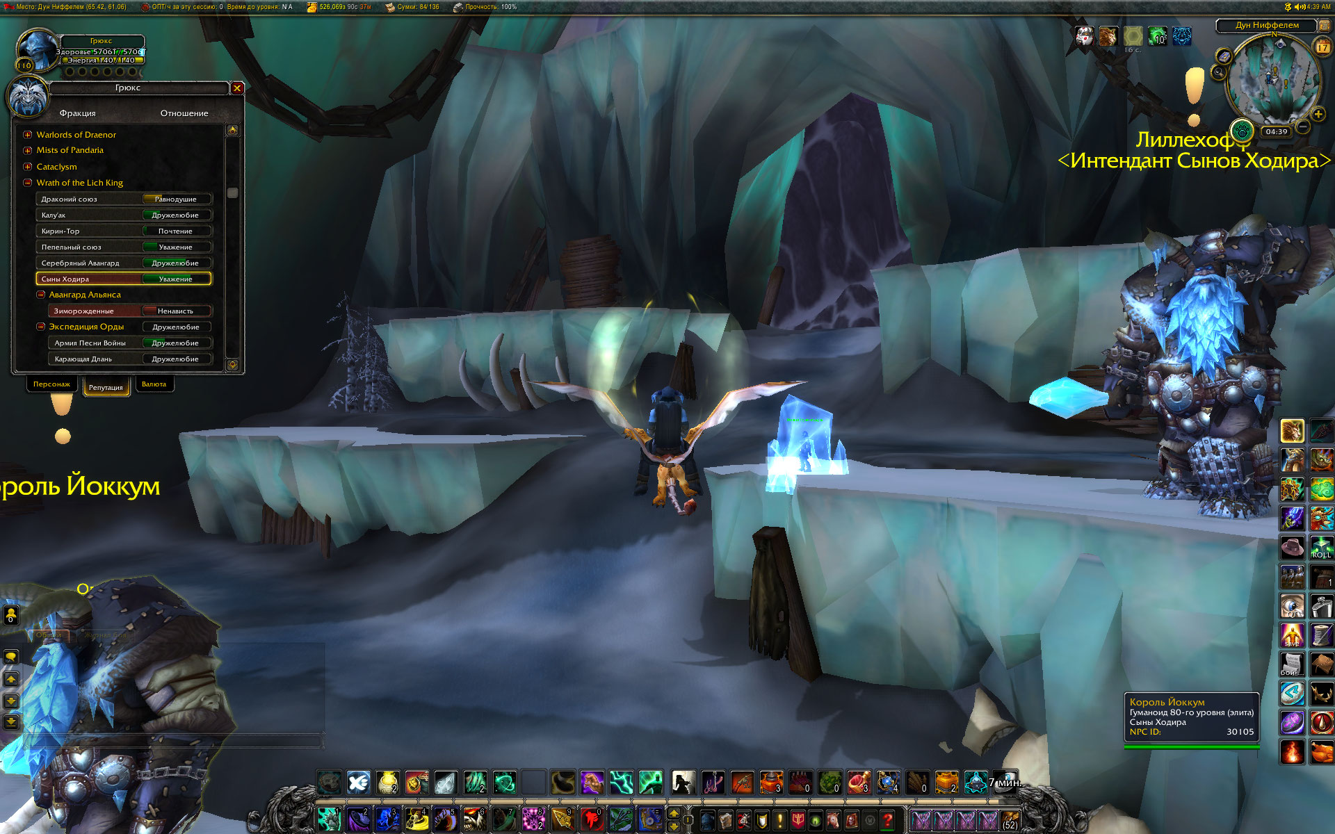 Привет. Фракция изначально враждебная, для взаимодействия нужно снять птицу "Противник". При желании потом птицу можно будет поставить обратно и снова снять . Полетчика исправили, работает нормально. Рекомендация - фармить или вечный лед (если исправили) или реликвии Ульдуара (работало и раньше). |