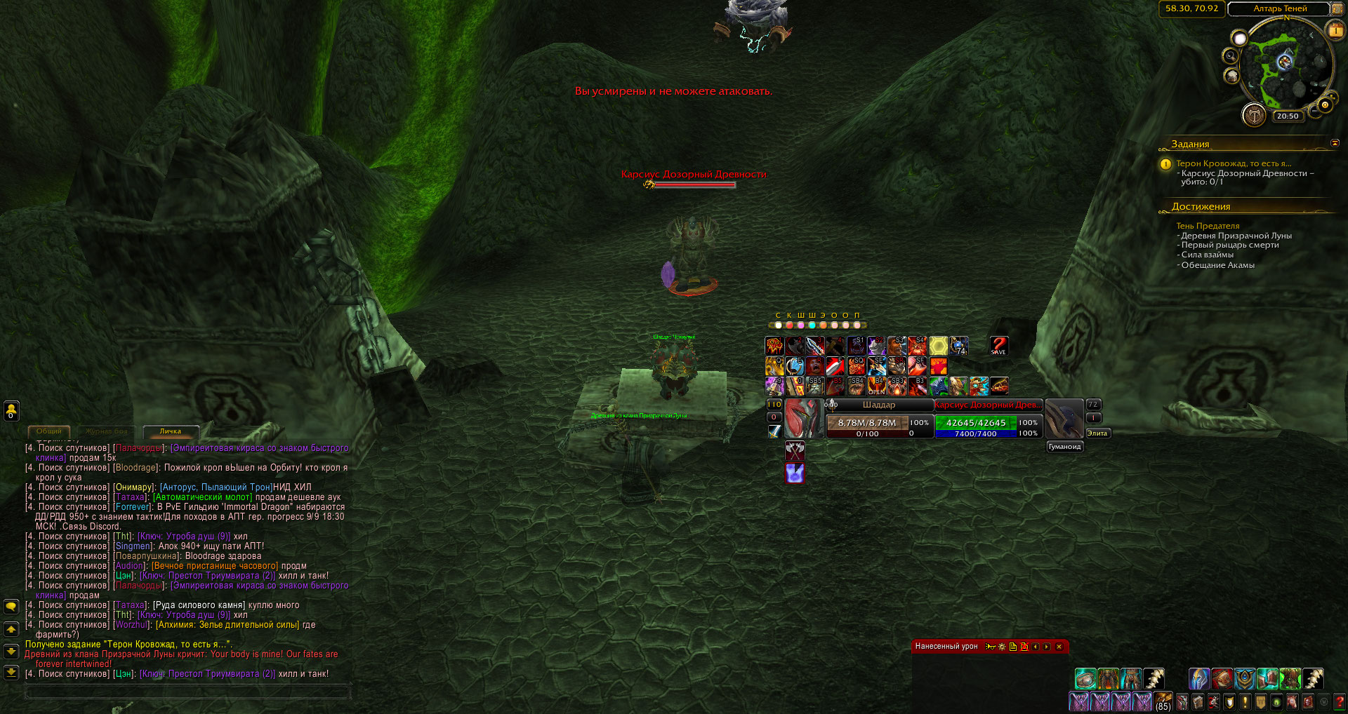 | Description | 1. https://ru.wowhead.com/quest=10639 2. https://ru.wowhead.com/npc=21797 не принимает демоническую форму и не становится прислужником, без этого не убивается https://ru.wowhead.com/npc=21877 3. Как должно быть: https://www.youtube.com/watch?v=g52xiOKIIsM | ||||