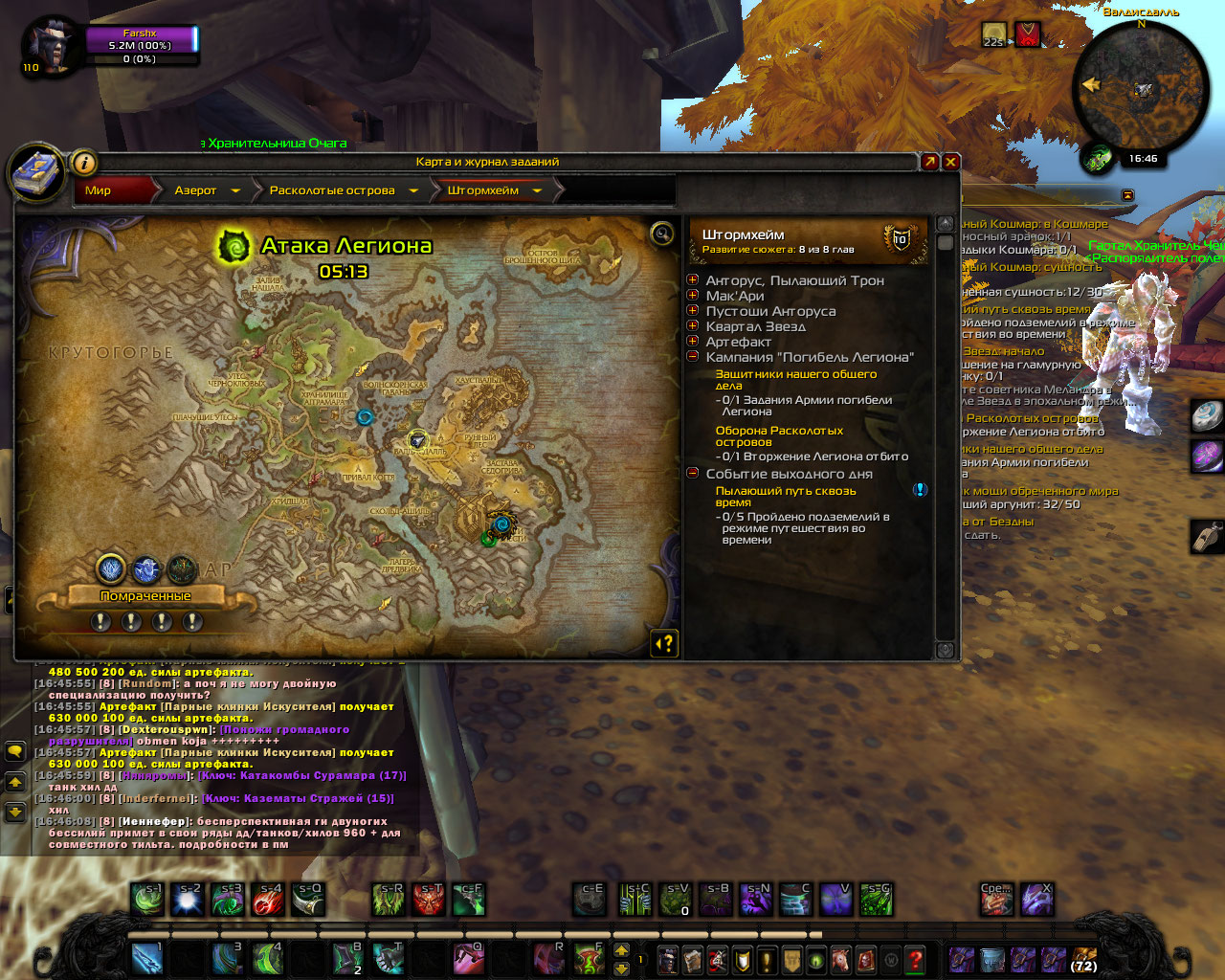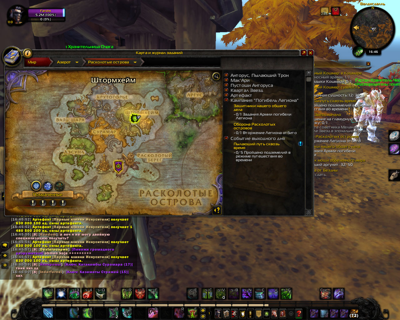 Второй ваш скриншот, там где карта Штормхейма. Видите на карте в правом верхнем углу остров и значок полетки? Вот после выполнения локалок на континенте летите туда, там рядом с полетчиком будет стоять Ветир. У Ветира возможны два варианта диалога - предложение сдать квест на 4 локалки или предложение сразу взять следующий квест цепочки вторжения Легиона. Дальше думаю понятно. для контроля - таргет на себя, в белом чате ввести последовательно команды .q s 45839 .q s 45406 .q s 46110 Есть два взаимоисключающих мнения - что квест 45839 одноразовый, и что квест 45839 повторяющийся. В любом случае, если квест еще не выполнен и он не выдается автоматически при входе в зону вторжения - это баг. Все остальное или баг или нет. |