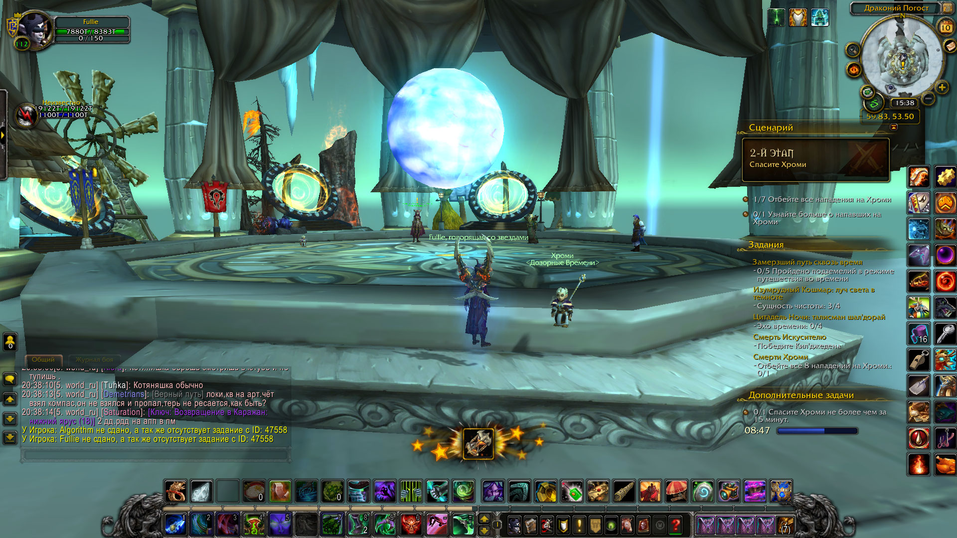 | Description | При многократных попытках пройти сценарий https://ru.wowhead.com/quest=47906 я ни разу не получила с https://ru.wowhead.com/npc=122871 https://ru.wowhead.com/item=150944 (и, соответственно, задание https://ru.wowhead.com/quest=47558), из-за чего не открывается портал в Источник Вечности и нельзя пройти сценарий. Релог, отказ от квеста, прохождение остальных боссов сценария не помогли. Скриншот с отсутствующим порталом и скриптом, указывающим, что я квест на хронолит не проходила, прилагаю. | ||||