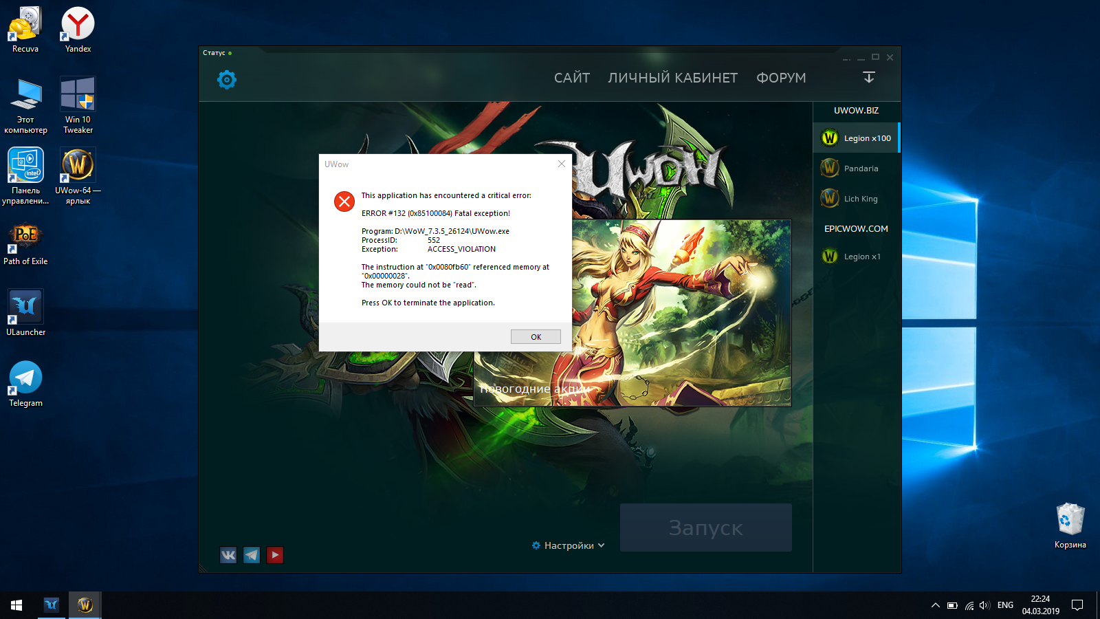 | Description | выкидывает при загрузке ник Драконы х 100 раньше такого не было файлы через лаунчер правил кэш чистил персонажа исправлял выкидывает именно вара | ||||
