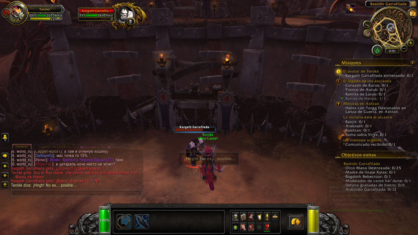 | Description | Good afternoon. The mission is called Terokk's Avatar Where i found the bug. When I face Kargath Sharpclaw I defeat him and he starts talking, then supposedly I should teleport, he doesn't and leaves me there and Kargath Sharpclaw disappears and the mission is not completed. | ||||
