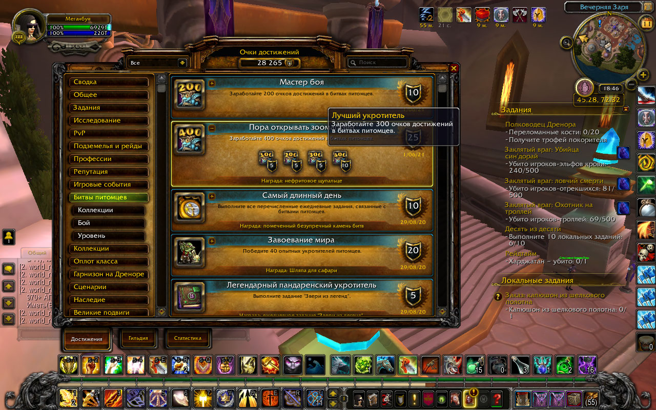 | Additional Information | От тестера: Нужно исправить очередность выдачи достижений При выполнении https://ru.wowhead.com/achievement=6600 не должно давать следующее https://ru.wowhead.com/achievement=7521 | ||||