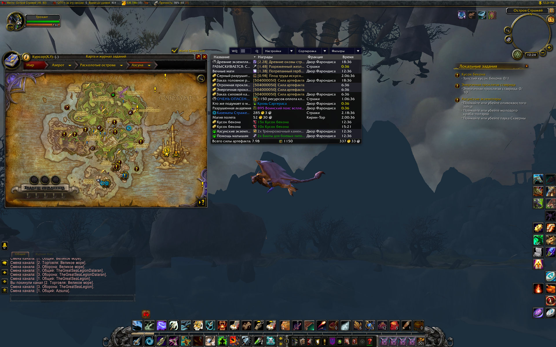 Вообще то мы имеем два бага. первый баг - некорректный призыв в инст в случае ппг (условно говоря, случайно собранная группа), если персонаж в момент принятия призыва летит на такси. второй баг - сбой системы восстановления координат персонажа при следующем входе в игру. Фигня с потерей координат, если персонаж прилетел в локацию на такси и после этого час летает по другим локациям на своем маунте, выполняя локалки, возвращается камнем в Даларан и затем выходит из игры. Чаще всего следующий вход в игру выбросит персонажа у полетки, куда он крайний раз прилетел. Это неправильно, но разработчики не желают исправить систему сохранения положения персонажа. Даже команда .save имеет косметический эффект и выполняется с целью самоуспокоения. На сохранение точки выхода из игры не влияет. на Расколотых островах. А в случае какого либо сбоя или дисконнекта эта система вообще сходит с ума и почему то вспоминает о таком вот состоянии, как показано на моих скриншотах. Причем, уверяю Вас, после исправления персонажа (а в этот момент персонаж был в Оргримаре) я дважды делал релог уже в Огри и дважды персонаж входил в игру на том же месте (у ворот Огри), затем я дважды делал релог в Пандарии - тоже все было нормально. а после вылета клиента снова система "вспомнила" что я летел в Награнд. И как Вы понимаете, прошло уже две недели после завершения Огненного солнцеворота, когда и случился первичный сбой, сервер минимум десяток раз делал плановый рестарт. |