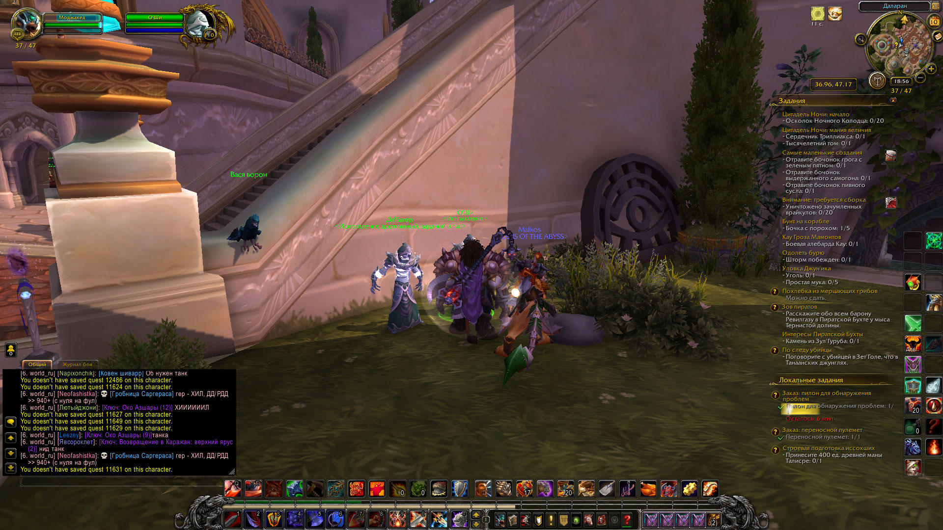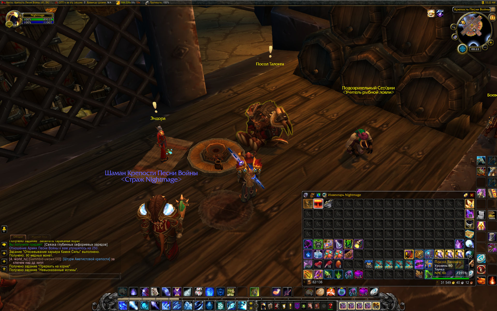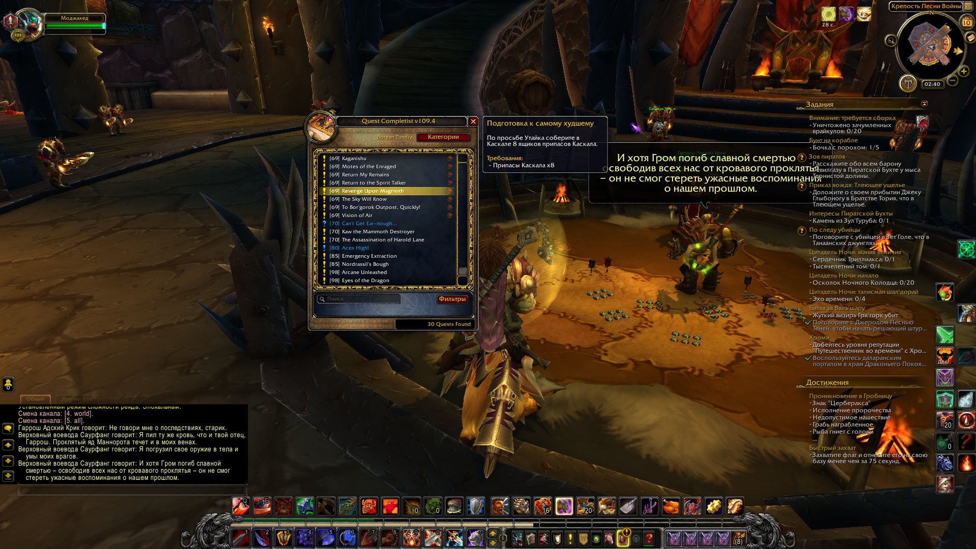 скрин проверки указанных мной квестов можно сделать? если все три квеста из возможных вариантов сделаны - можно перезачесть из у Оши последовательно, потом слетать еще раз в Крепость песни войны и глянуть у нпс новые квесты. еще вариант - поставить аддон Quest Completist Если после этого прилететь в локацию - он на карте нарисует квестодателей, при наведении на которых всплывают списки квестов с пометками - выполнены-не выполнены. Также с командной строки можно запустить табличный режим аддона - он списком выведет все квесты в локации, пролистав можно найти невыполненные и посмотреть их названия/ИД. И можно сделать скрины с окна аддона в качестве доказательств чего либо. |