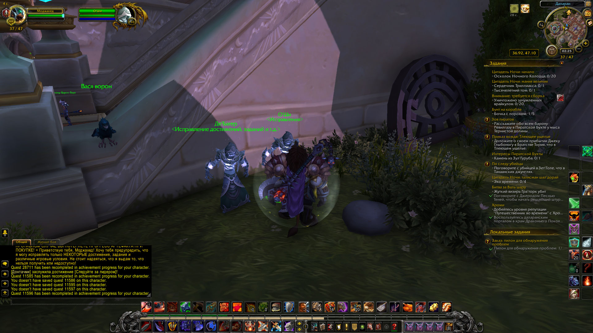 | Description | Добрый день! Проблема с получением достижения: 1) Нет цепочки заданий для получения первого пункта достижения (боюсь это баг только у моего перса и как получить не знаю, даже понятия не имею на какой стадии оборвалась цепочка, скорее всего начальные). Скрин прикрепил 2) Не работает задание https://ru.wowhead.com/quest=11879/%D0%BA%D0%B0%D1%83-%D0%B3%D1%80%D0%BE%D0%B7%D0%B0-%D0%BC%D0%B0%D0%BC%D0%BE%D0%BD%D1%82%D0%BE%D0%B2 (поставьте пожалуйста автозавершение или сделайте как на других серверах, чтобы можно было убивать NPC - хотя бы до починки) 3) Не работает задание https://ru.wowhead.com/quest=11895/%D0%BE%D0%B4%D0%BE%D0%BB%D0%B5%D1%82%D1%8C-%D0%B1%D1%83%D1%80%D1%8E (поставьте пожалуйста автозавершение или сделайте как на других серверах, чтобы можно было убивать NPC) | ||||