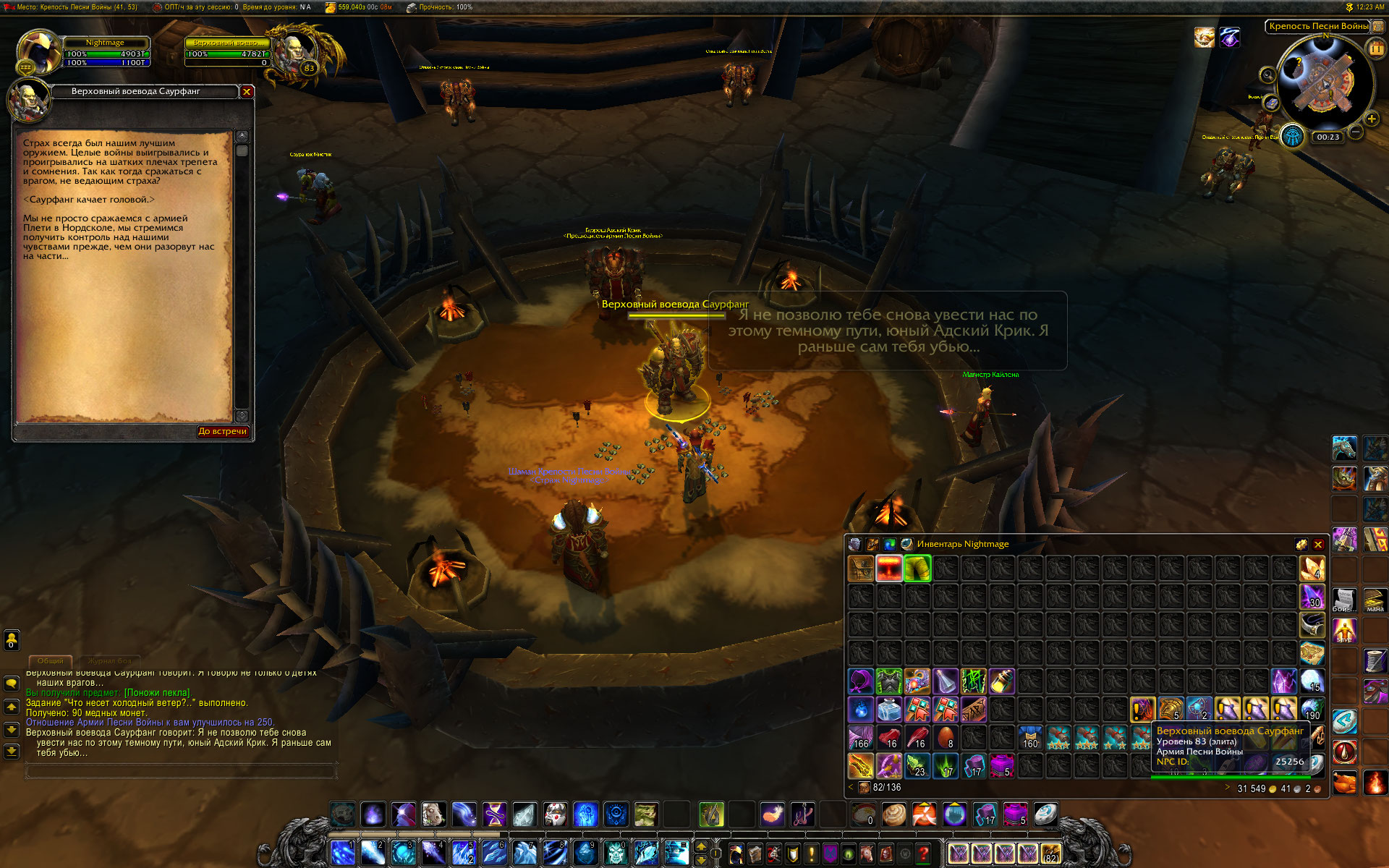 В общем, нашел я персонажа, на котором совершенно не сделана Борейка. Проверка показала, что После завершения квеста https://ru.wowhead.com/quest=11598 у НПС появились квесты https://ru.wowhead.com/quest=11574 и https://ru.wowhead.com/quest=11888 но у НПС https://ru.wowhead.com/npc=25272 не появился квест https://ru.wowhead.com/quest=12486 мой маг (ночнорожденный) шел начальной по цепочке 28711 , 11585 , 11596 - в таком порядке ему были выданы квесты. И только эти квесты. Были добиты все цепочки квестов вокруг крепости, это не устранило проблему. Так что считаю, что тестер имеет полное право перепроверить начальную цепочку квестов в Борейке. Что то с ней не так. С прошлого раза заметно, что несколько квестов были переработаны, в частности https://ru.wowhead.com/quest=11661/%D0%BE%D1%80%D0%B0%D0%B1%D1%83%D1%81-%D0%BA%D0%BE%D1%80%D0%BC%D1%87%D0%B8%D0%B9 и https://ru.wowhead.com/quest=11652/%D1%80%D0%B0%D0%B2%D0%BD%D0%B8%D0%BD%D1%8B-%D0%BD%D0%B0%D0%B7%D0%B0%D0%BC%D0%B0 |