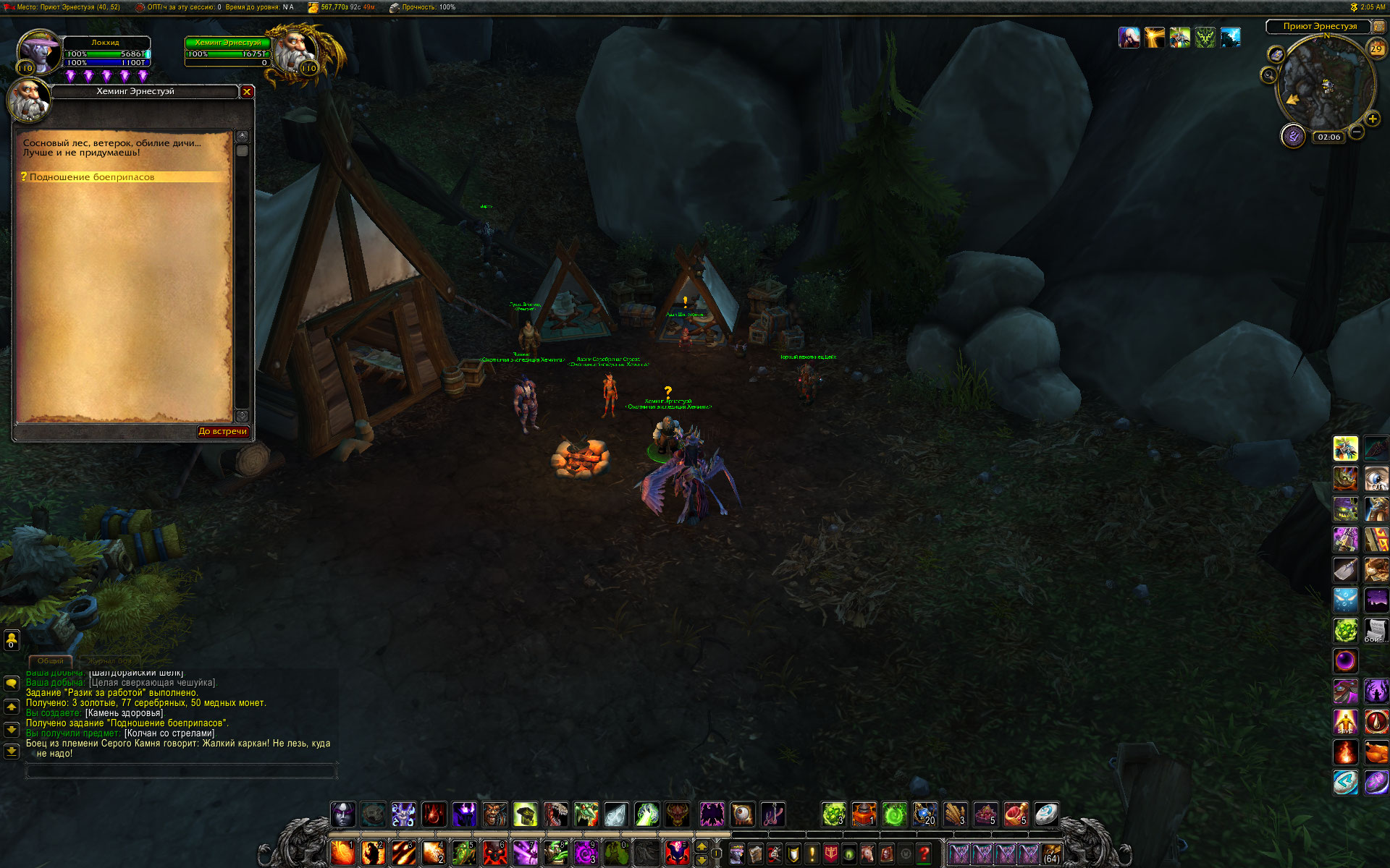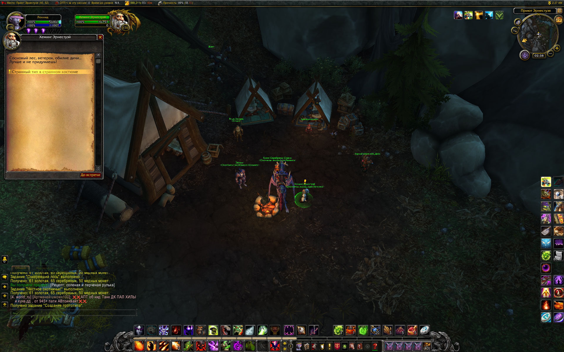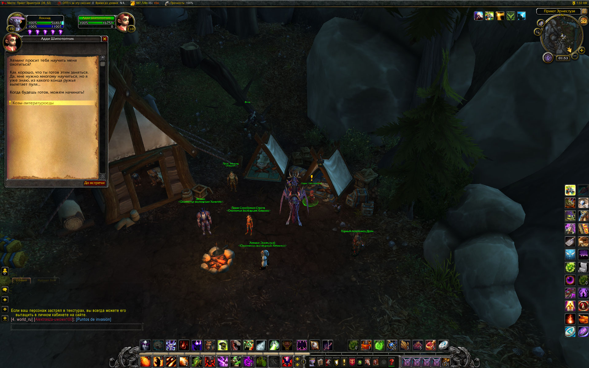 привет. А что говорит на этот счет аддон Btwquests? В нем конечно некоторые побочные цепочки с ошибками, но цепочка Эрнестуэя насколько помню прописана. Цепочка начинается у https://ru.wowhead.com/npc=99905 в Громовом тотеме с квеста https://ru.wowhead.com/quest=40217 Кстати там же в лагере начинается цепочка с мурлоками. Относительно недавно по моим меркам проходил эту цепочку, добывал игрушку. Так что по идее все должно работать. |