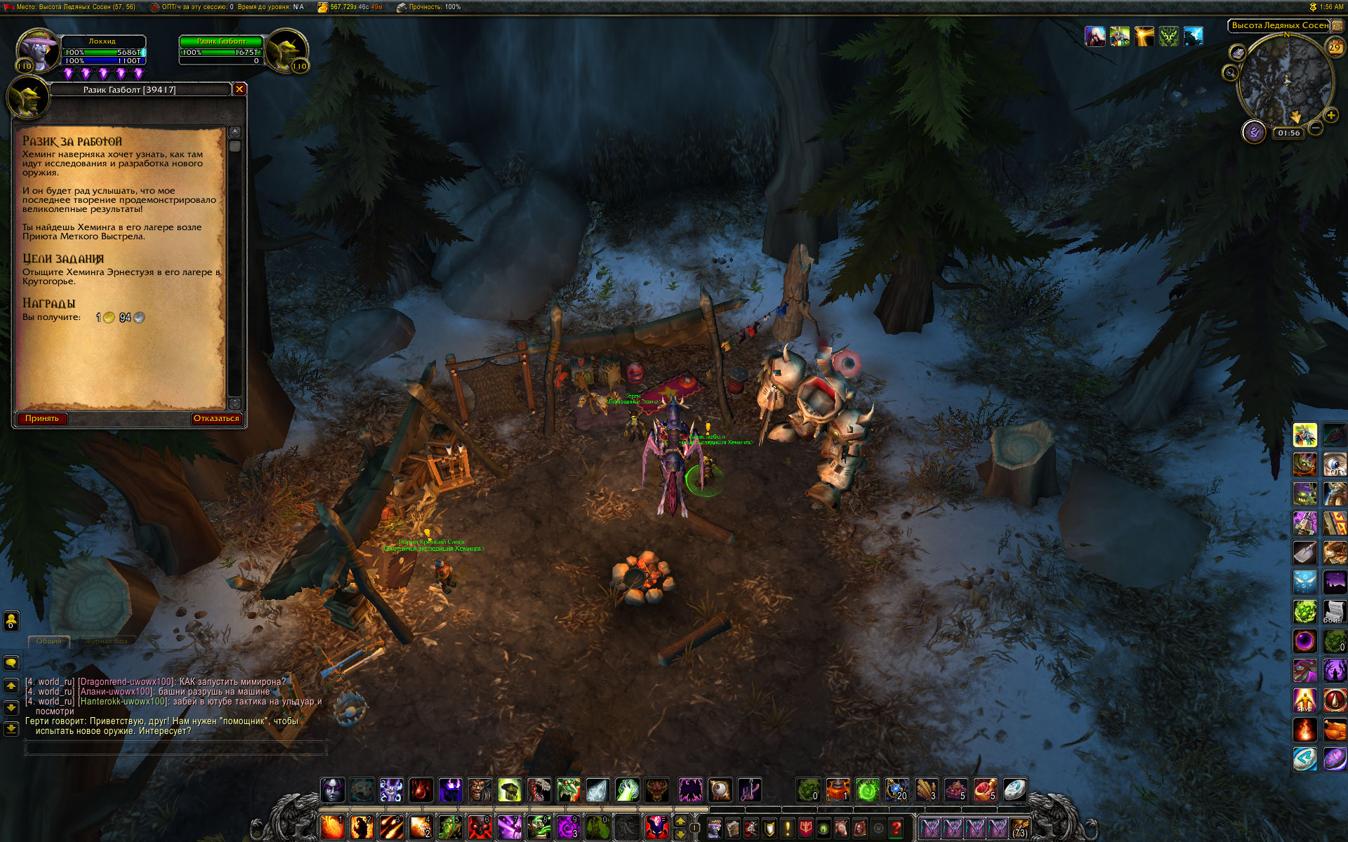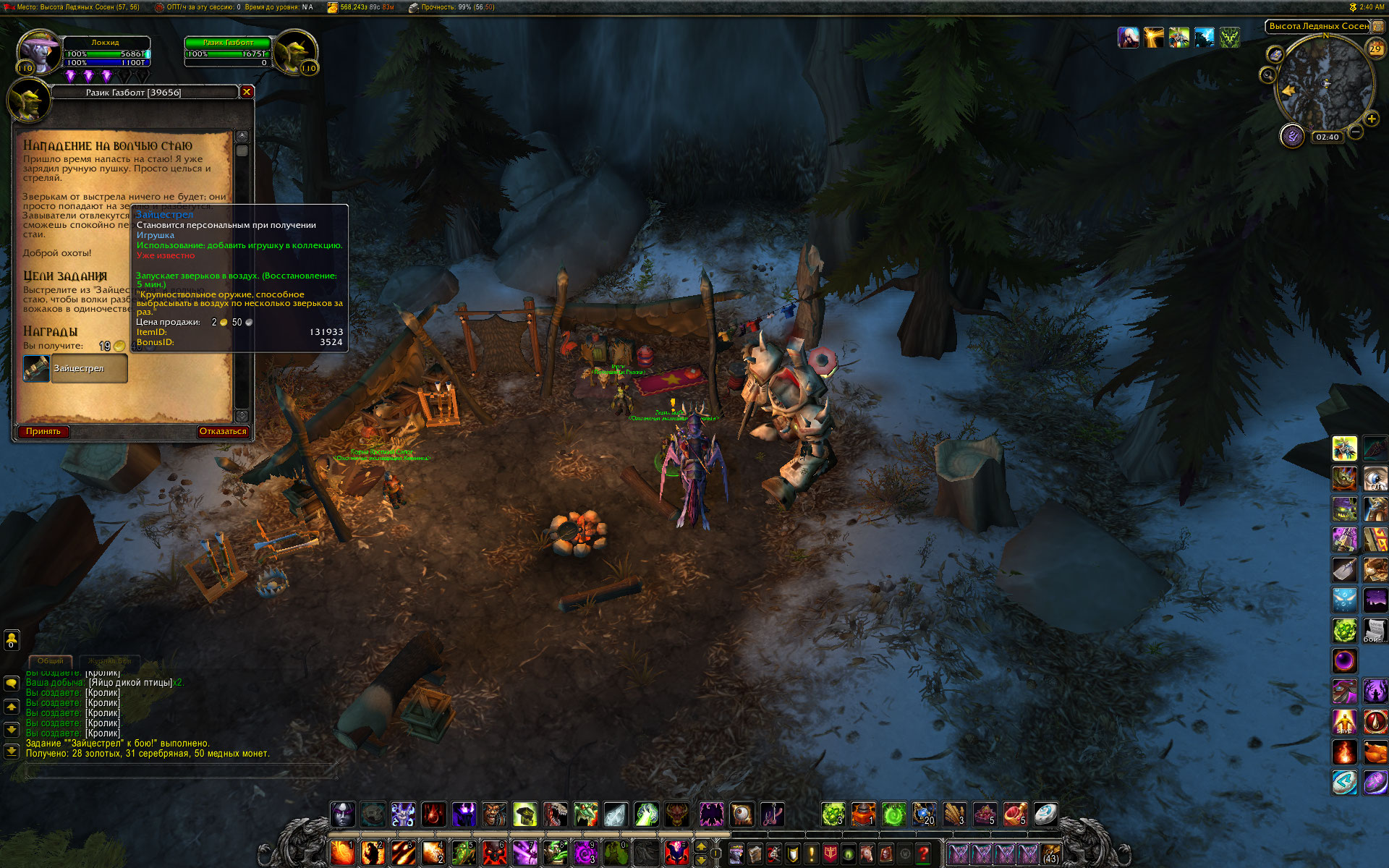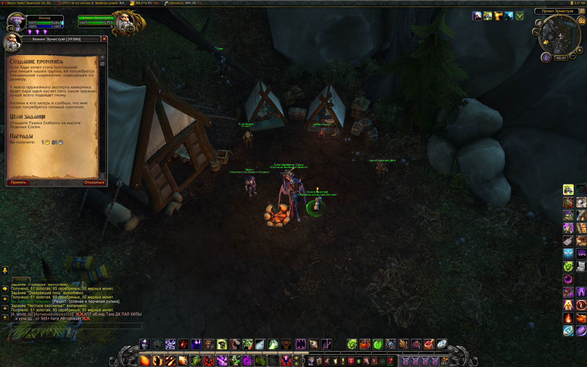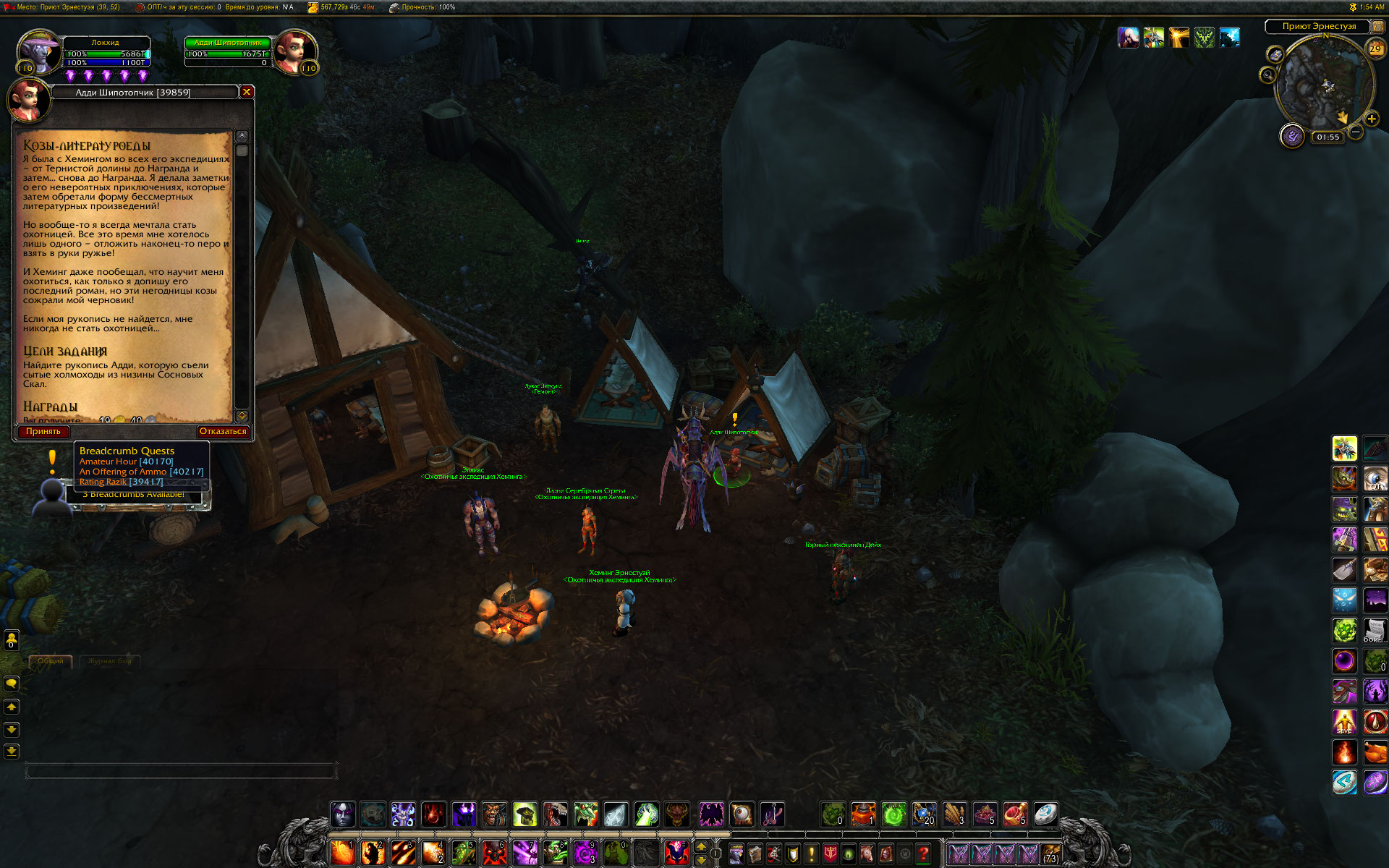 привет. А что говорит на этот счет аддон Btwquests? В нем конечно некоторые побочные цепочки с ошибками, но цепочка Эрнестуэя насколько помню прописана. Цепочка начинается у https://ru.wowhead.com/npc=99905 в Громовом тотеме с квеста https://ru.wowhead.com/quest=40217 Кстати там же в лагере начинается цепочка с мурлоками. Относительно недавно по моим меркам проходил эту цепочку, добывал игрушку. Так что по идее все должно работать. |
