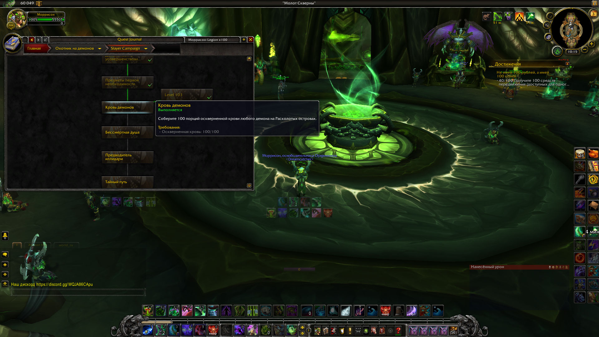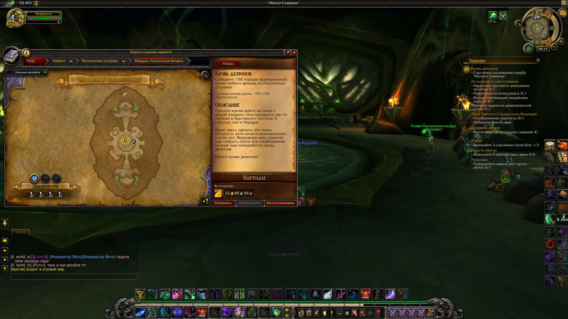 | Description | Название квеста Кровь демонов .в Оплоте охотников на демонов. по завершению квеста нужно спустится на нижнюю палубу , при спуске на нижнюю палубу на миникарте горит значок здачи квеста а физически НПС там нету. | ||||