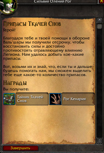 | Summary | 0016175: Задание Припасы Ткачей Снов | ||||