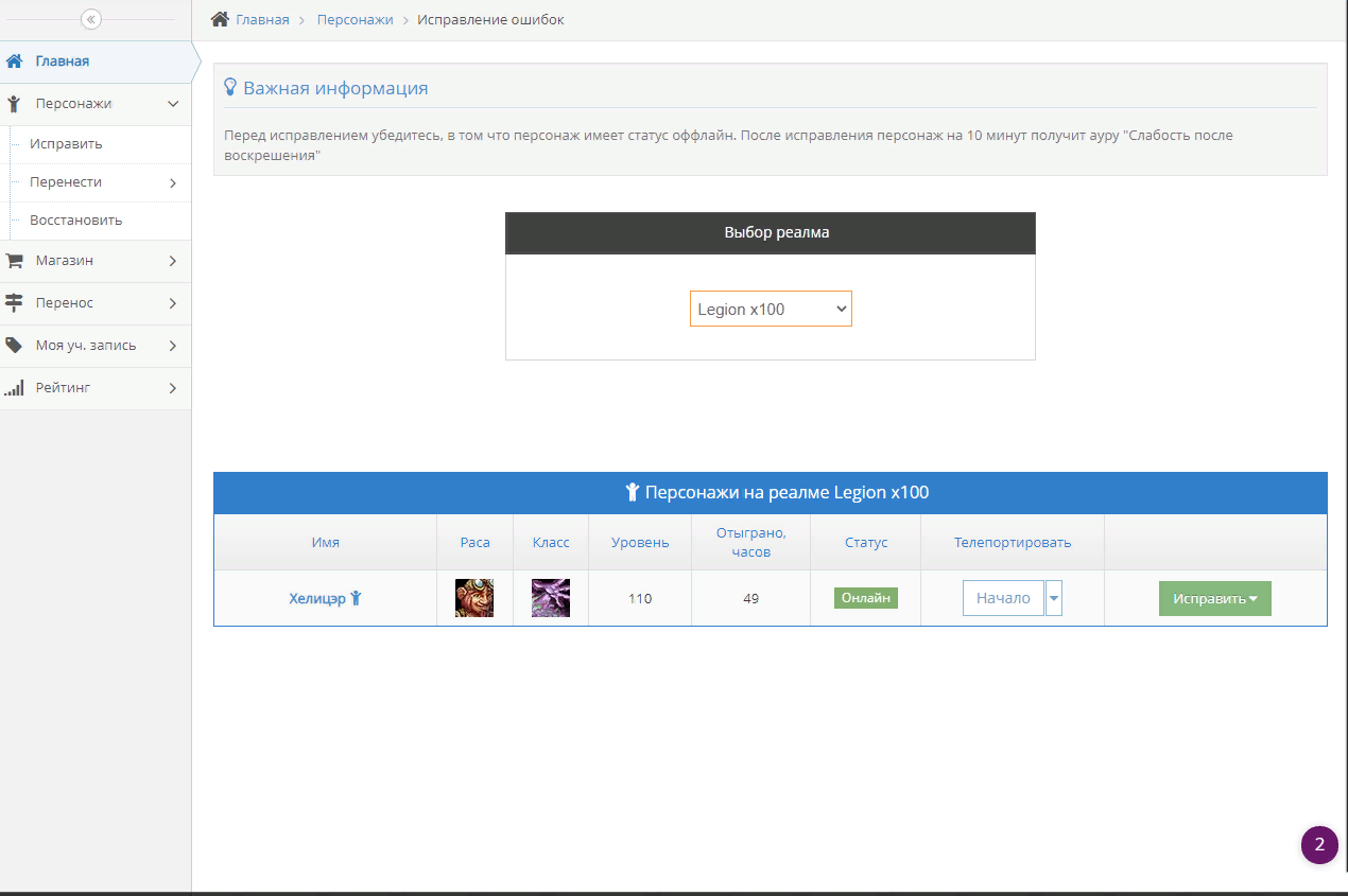 | Description | Невозможно исправить персонажа в ЛК - пишет что персонаж онлайн хотя по факту это не так. Исправьте пожалуйста. | ||||