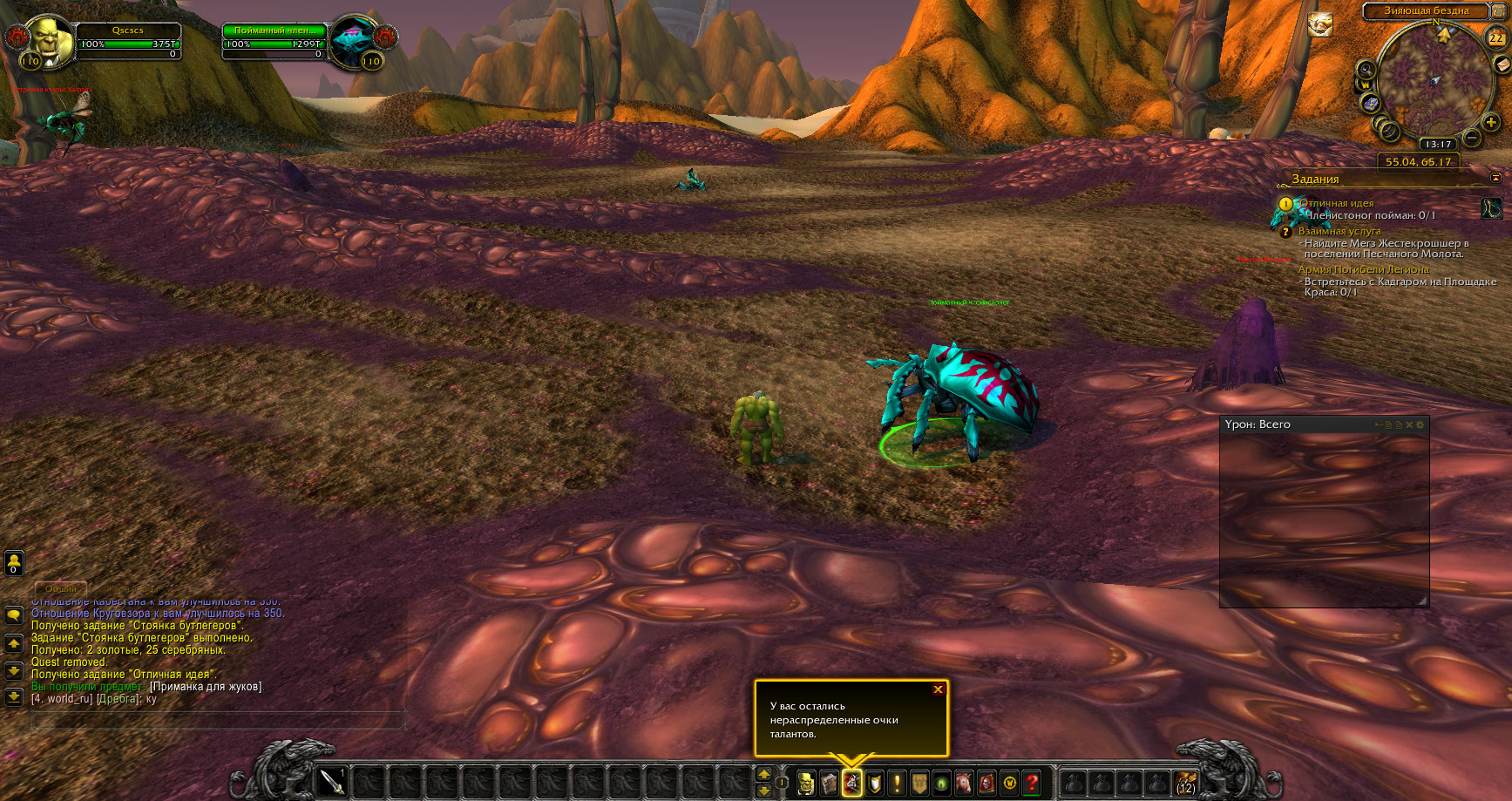 | Description | Танарис. Стоянка бутлегеров наче, при броске мяса к жукам, они не ка не реагируют на это и из-за этого выполнение квеста невозможно. | ||||