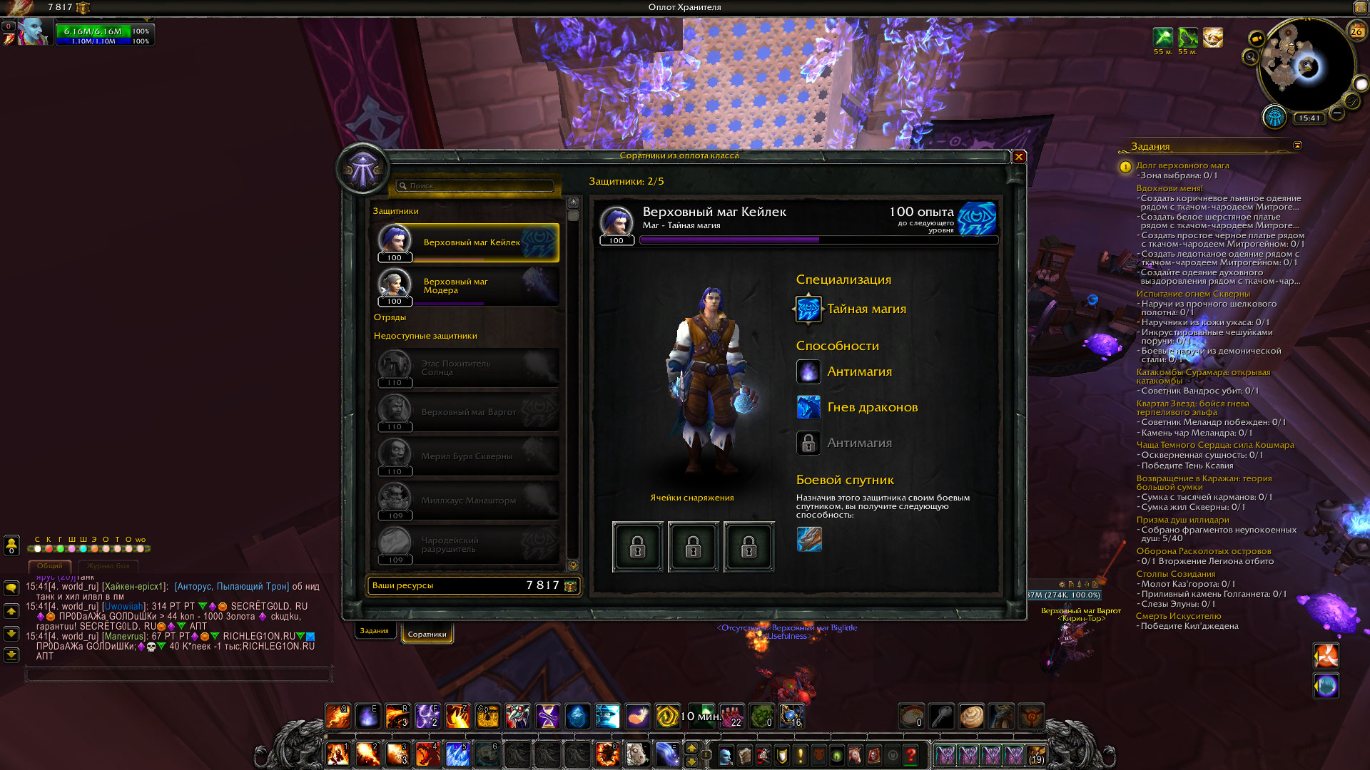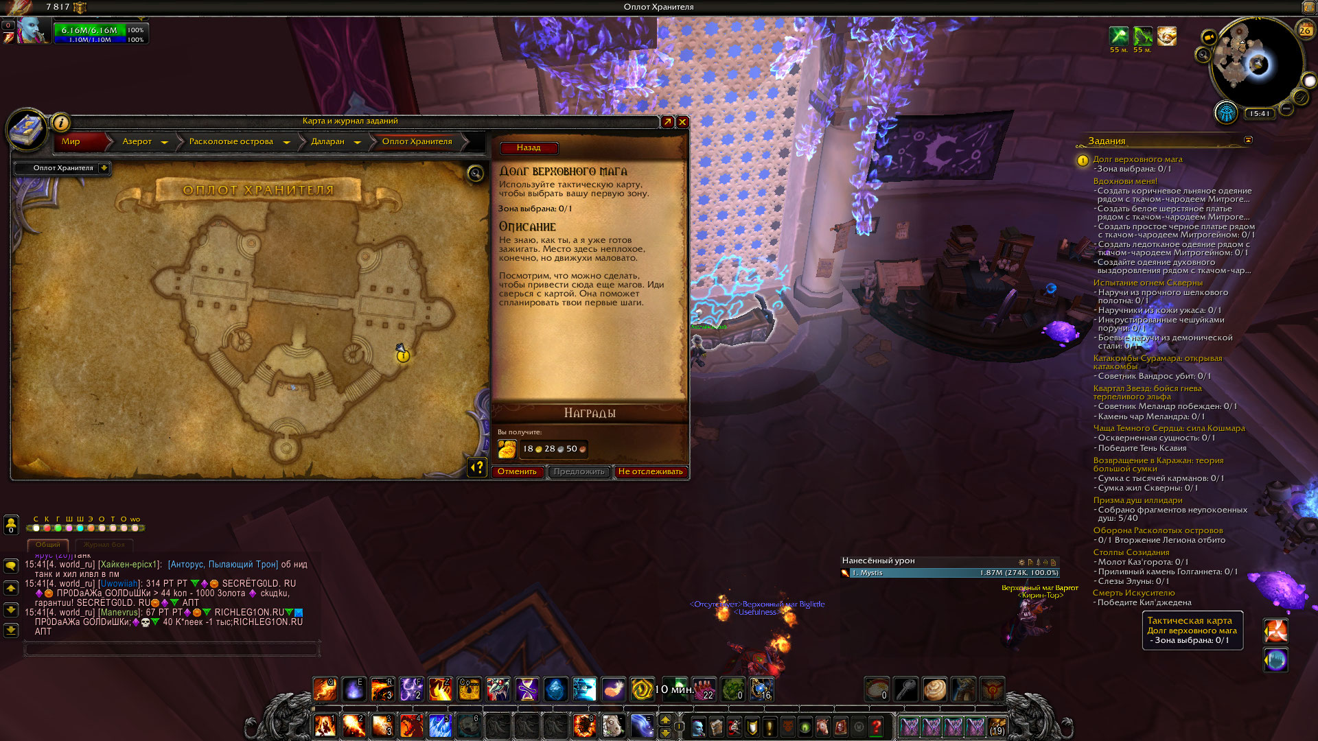 | Description | Не могу выполнить квест " Долг верховного мага" т.к нету выбора вкладки тактической карты для выбора локации. Возможно связанно с тем, что мною уже пройдены все цепочки квестов на другом сервере, и прокачана репутация. Не понимаю что теперь делать, не могу носить 2 легендарки без этих квестов. | ||||
