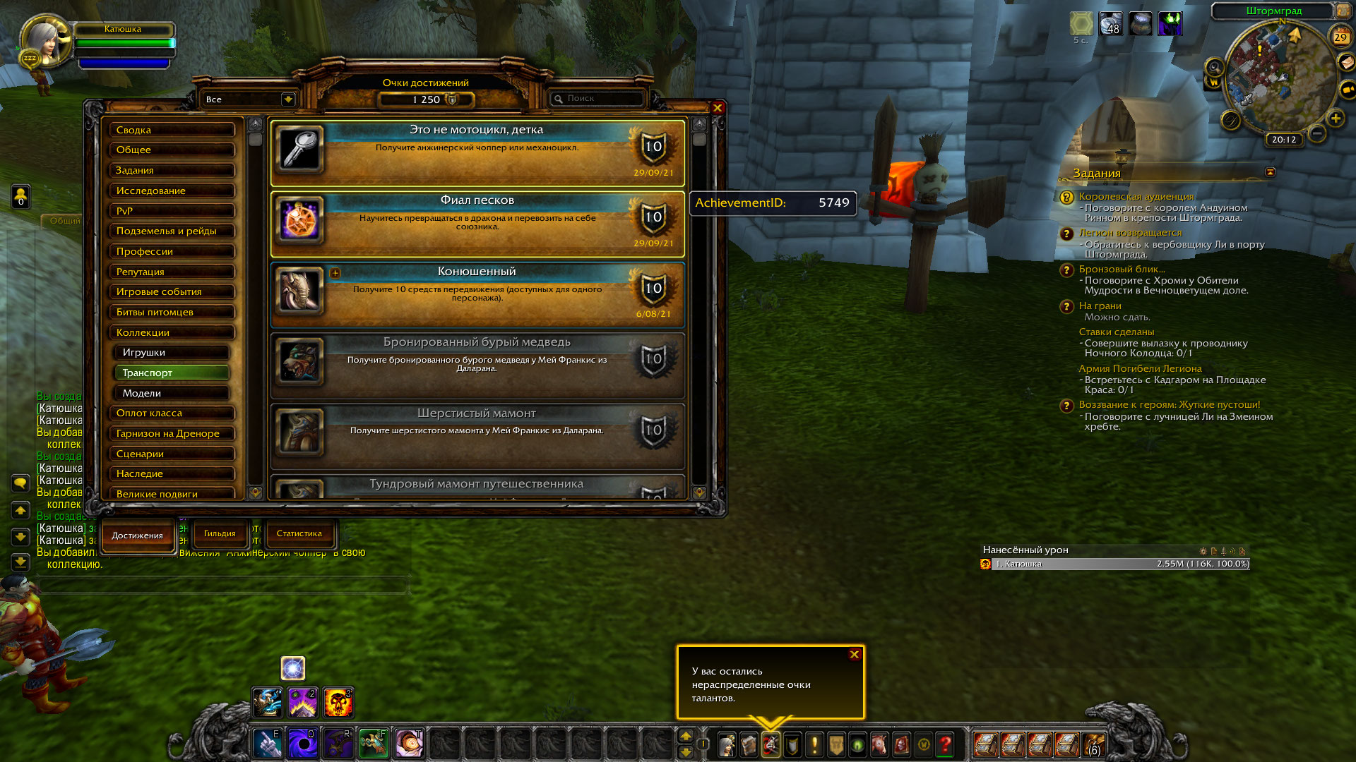Hello there Sorry for the late reply. Yes I transferred all my chars from Argus to Uwow two weeks now and I remember back in Argus when I learned those mounts I got their achievements too I'll try to use O'shey on the char where I got those mounts. Thanks |