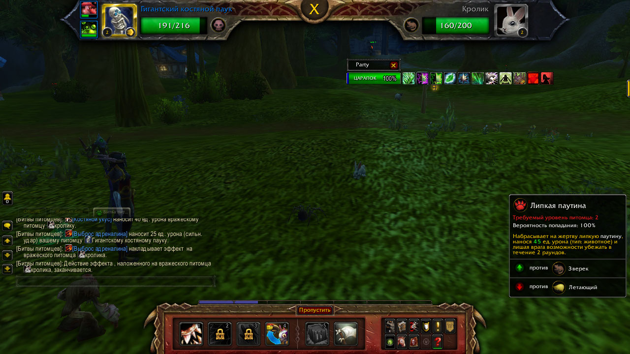 | Description | В битвах питомцев, если питомец поднес уровень, то в следующей битве способность, что открывается на взятом уровне неактивна, очень хорошо видно на скришоте - паучек 2-го уровня, но липкая паутина недоступна. Лечится перезаходом в игру. | ||||