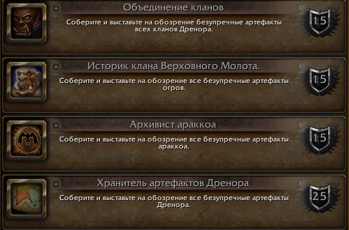 | Description | Вопрос заключается в том падают ли вообще квест итемы с дренорской археологии на достижения , если да то какой шанс ибо за 200+ итемов открытых , не одного квеста итема не упало , это явно не нормально . | ||||