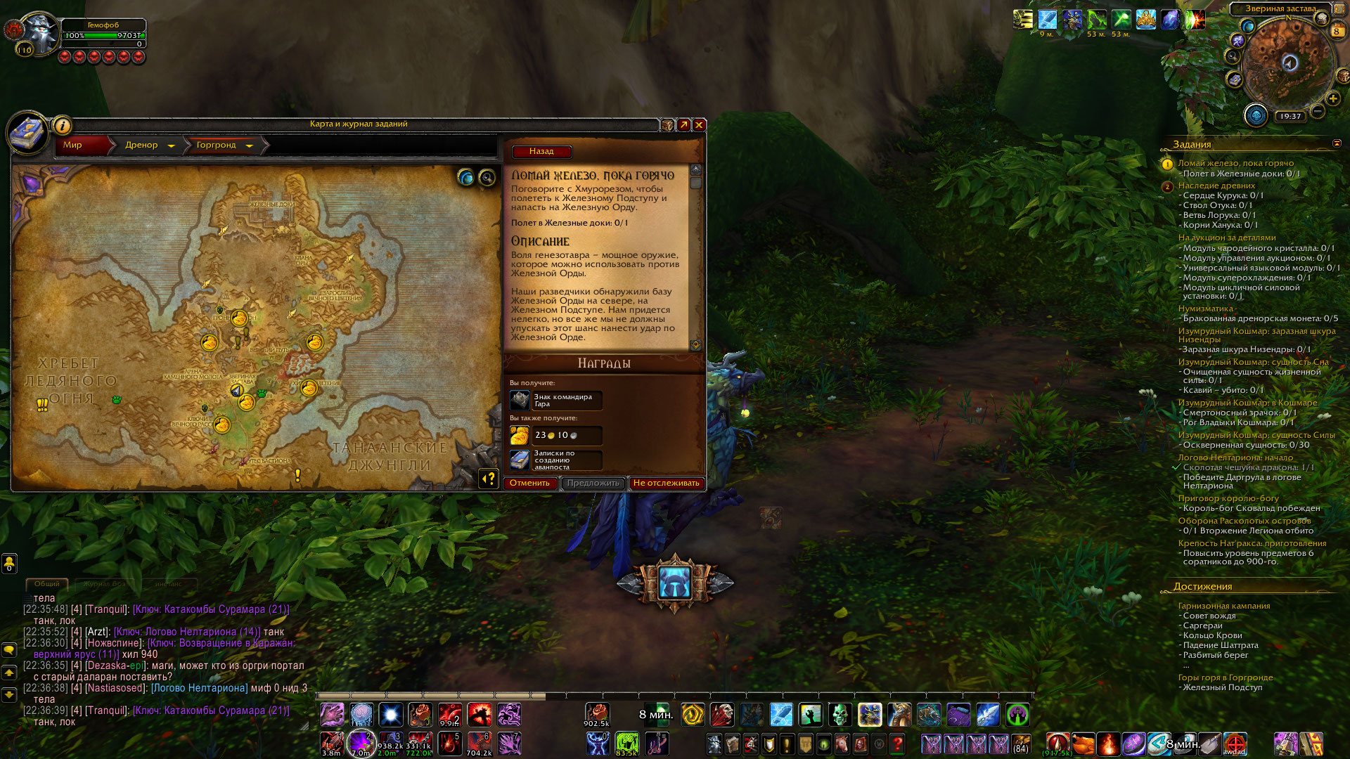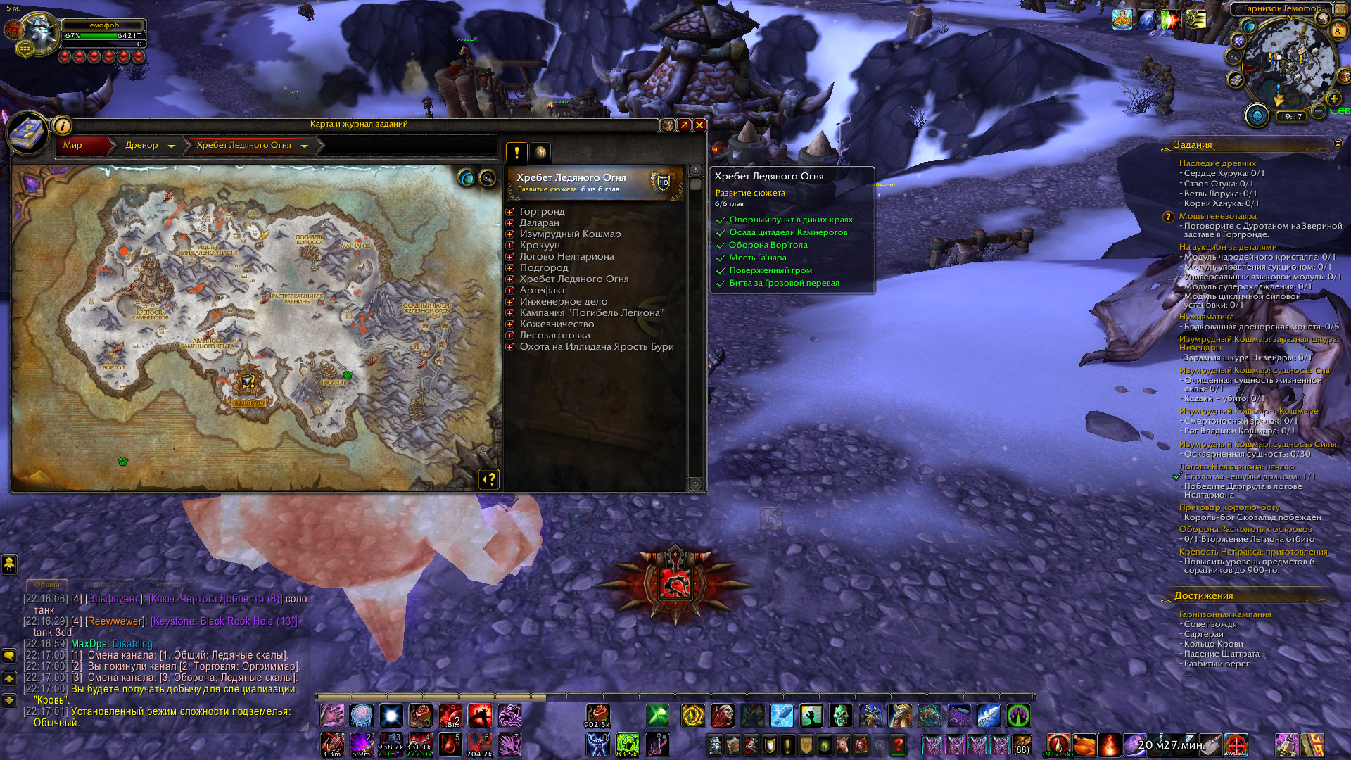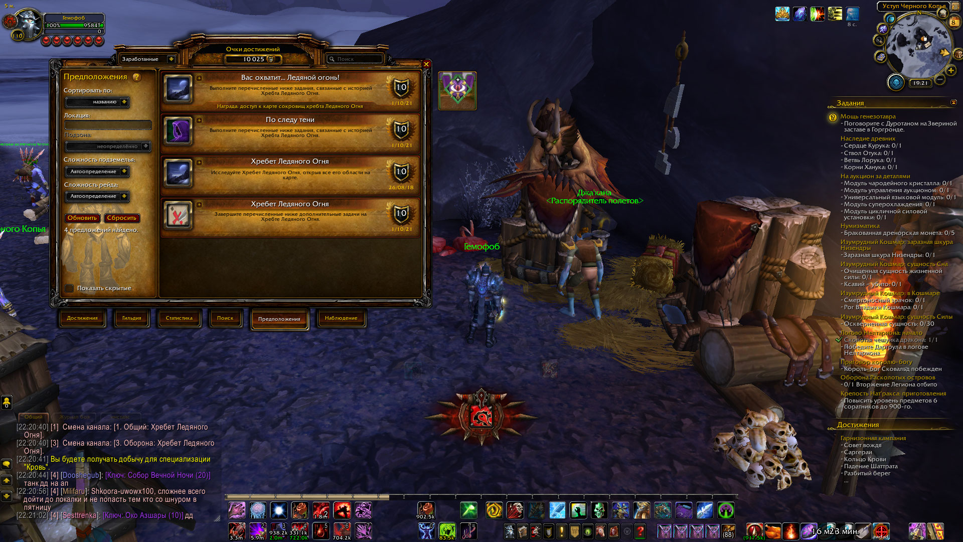 Вот вы все простые наивные. Дренор как дополнение - от начала и до завершения проходит как "Завоевание Дренора". То есть высадились на берегу и пошли вперед... Из локации к локации , от точки к точке. НПС в следующей по сюжету точке появляются, после выполнения всех квестов в предыдущей главе квестов локации. И если просто прийти куда то пешком, порталом или на крыльях товарища - там может быть пустое место, так как НПС туда еще не пришли. Случайные квесты сдавать некому, полетки нет. Что и видно на скрине. Баг был бы, если бы на скрине был виден прогресс - полностью выполненная сюжетка Ледяных скал и как минимум часть сюжетки Горгронда с выполненым пунктом Звериная застава. Покажите что пункт "Звериная застава" в сюжетке Горгронда в Вас выполнен? |