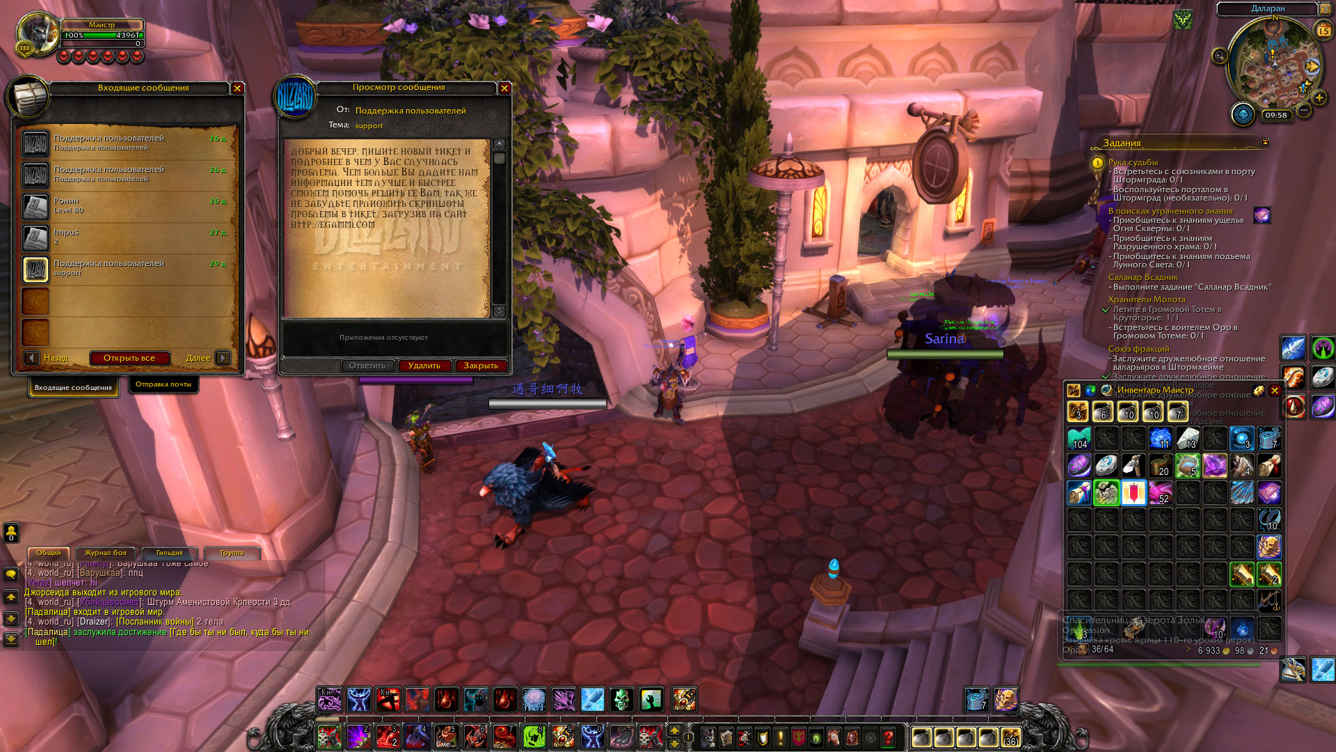| Description | Начал квест на получение орудия для специализации Лед. Зашел по квесту в ЦЛК (через портал в оплоте), начал бить мобов, игра зависла, был дисконнект с сервера. Перезашел, из ЦЛК меня переместило в Штормград. Переместился в оплот, квеста нет, вендоры не активны, портала нет. Квест не могу сделать. Пожалуйста, помогите! | ||||
