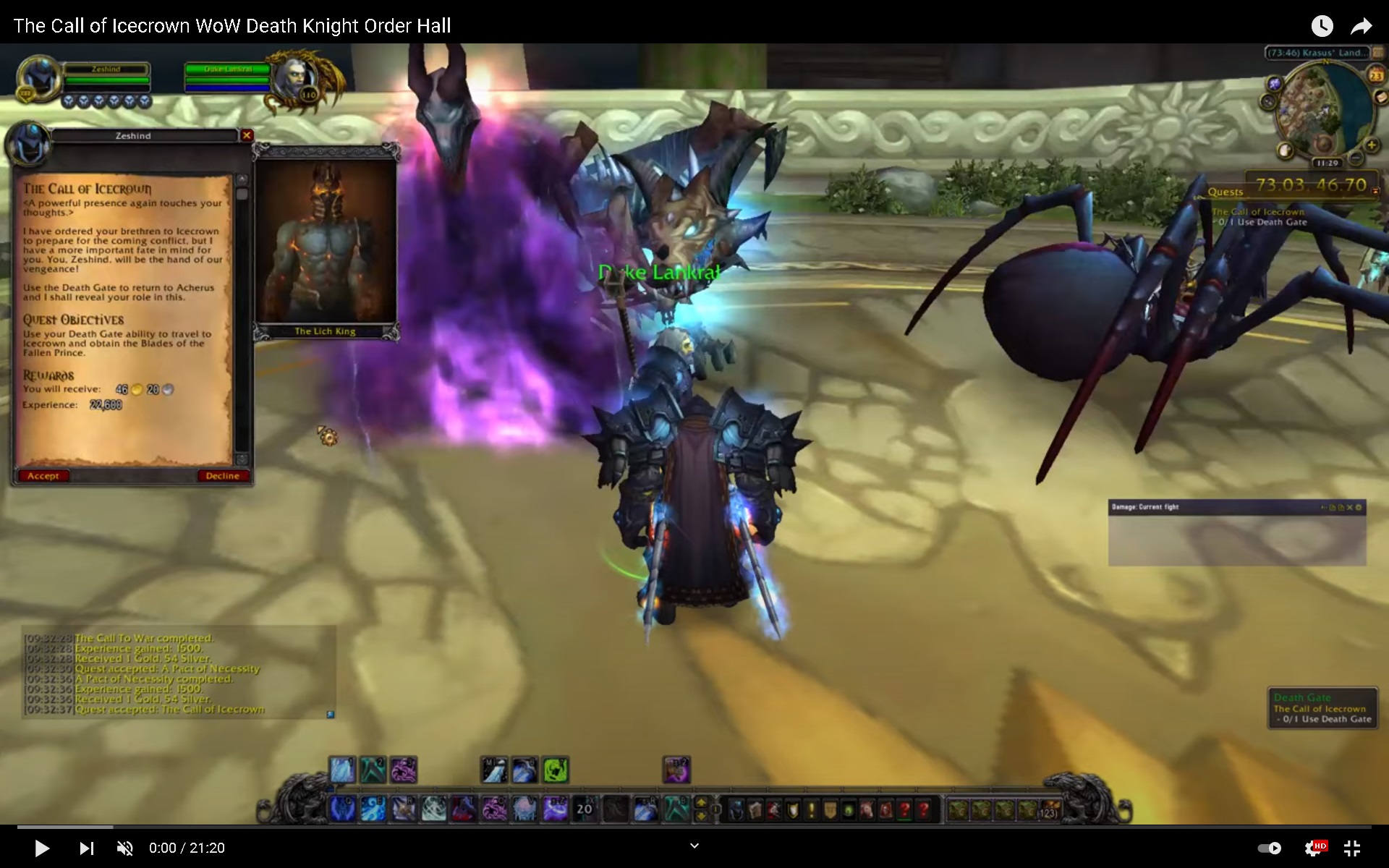 А вот такой вопрос к IMPUS - на видео квест берется у Ланкрала в Даларане и портал в Ледяную корону открыт рядом с Ланкралом. на площадке Краса. По аналогии с другими классами, когда за артефактом нужно куда то отправляться, часто транзит делается с площадки у полетчика. И НПС ответственные за квест стоят там, у них можно повторно взять квест. Эти НПС видны только игроку, который активировал выбор артефакта, но еще не получил его. Вы смотрели в Даларане нужный квест или хотя бы портал? |