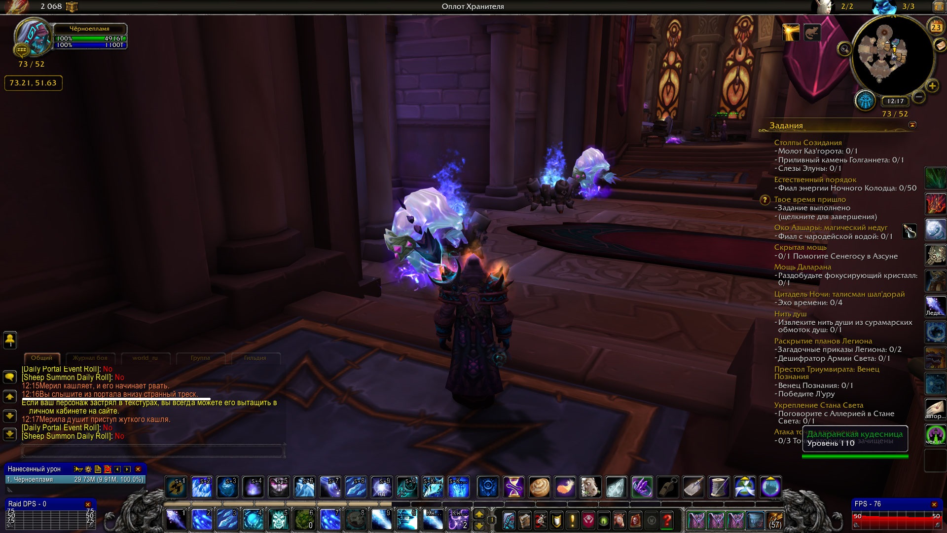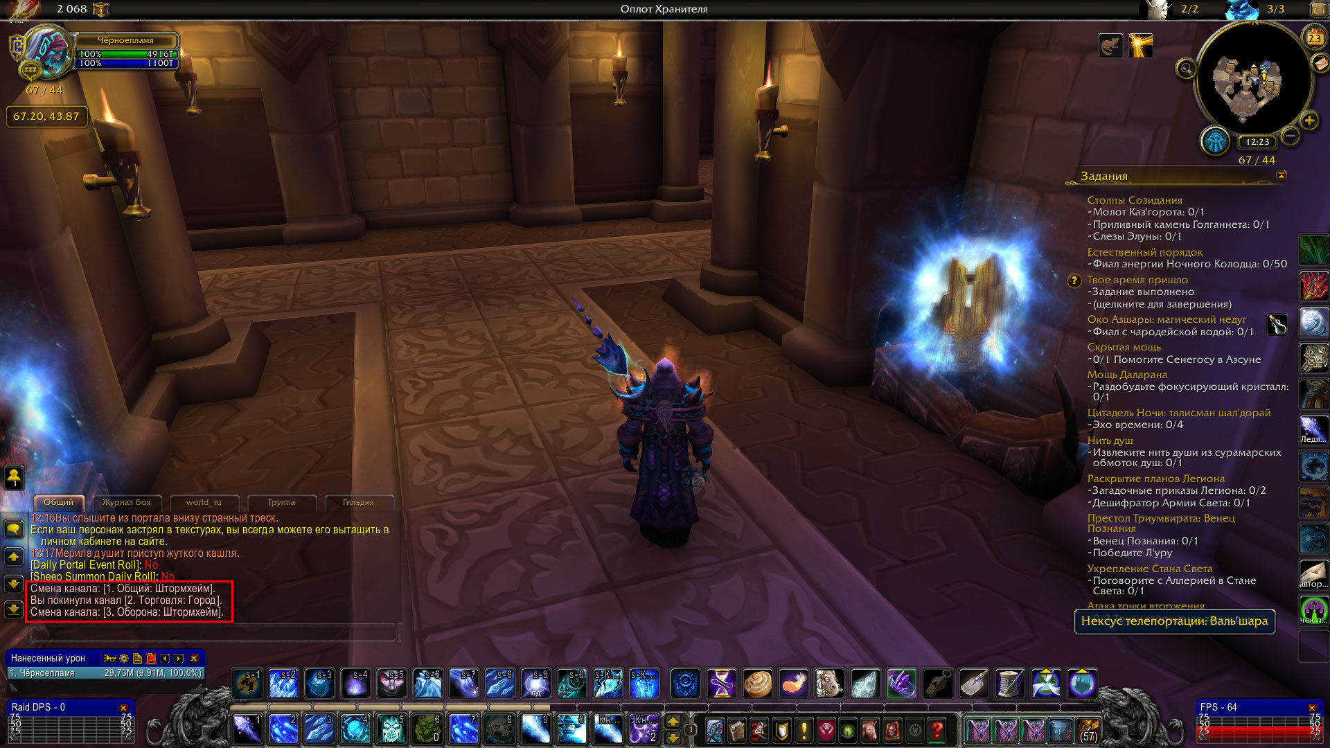 | Description | Решил открыть секретный облик артефакта "Полярная ноль" фрост мага. Для этого вкачал нексус телепортации в оплоте и начал бегать по ступенькам, пытаясь запустить событие, при котором тебя телепортирует в секретную локацию. В чате написало "Вы слышите из портала странный треск", что означает успешный запуск события. Зашёл в первый попавшийся портал, коим оказался портал в Штормхейм, и попал в обычный Штормхейм а не в секретную локу. | ||||