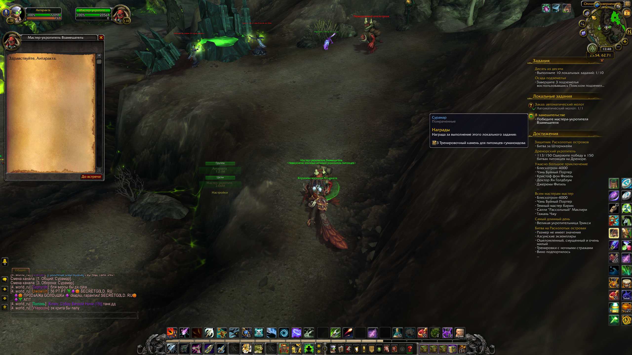 Так же проблемы с локалками даларана: типа https://ru.wowhead.com/quest=40298/%D0%BD%D0%BE%D1%87%D1%8C-%D0%B1%D0%B8%D1%82%D0%B2%D1%8B-%D1%81%D1%8D%D1%80-%D0%B3%D0%B0%D0%BB%D1%8C%D0%B2%D1%81%D1%82%D0%BE%D0%BD выдает надпись "Поверхность для битвы питомцев слишком неровная" |