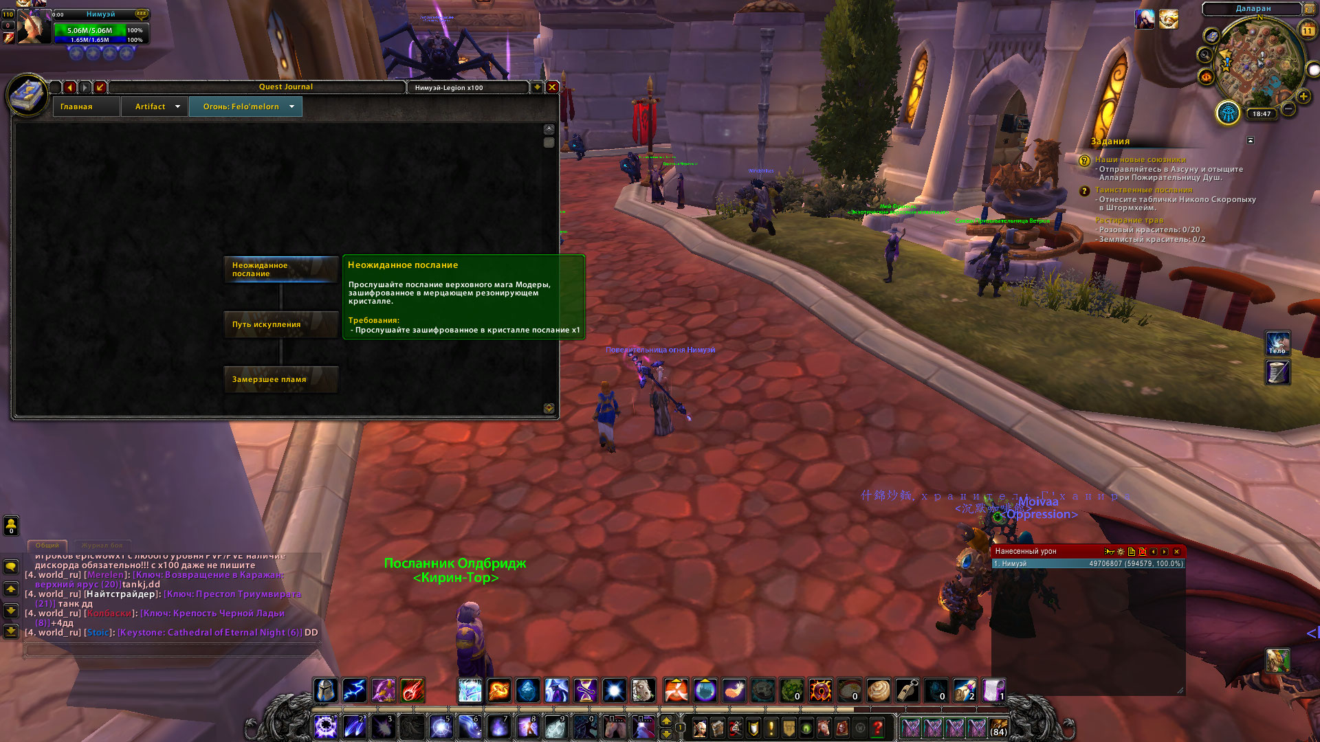 | Description | Доброго времени суток, прошел кампанию оплота класса, а квест на выбор дополнительного артефакта так и не появился не в оплоте не в даларане. при тп в даларан спавнятся много нпс "Мерил Буря Скверны" и просто бегают следом ни как ни взаимодействуя. несколько раз пробовал исправить персонажа не помогло | ||||