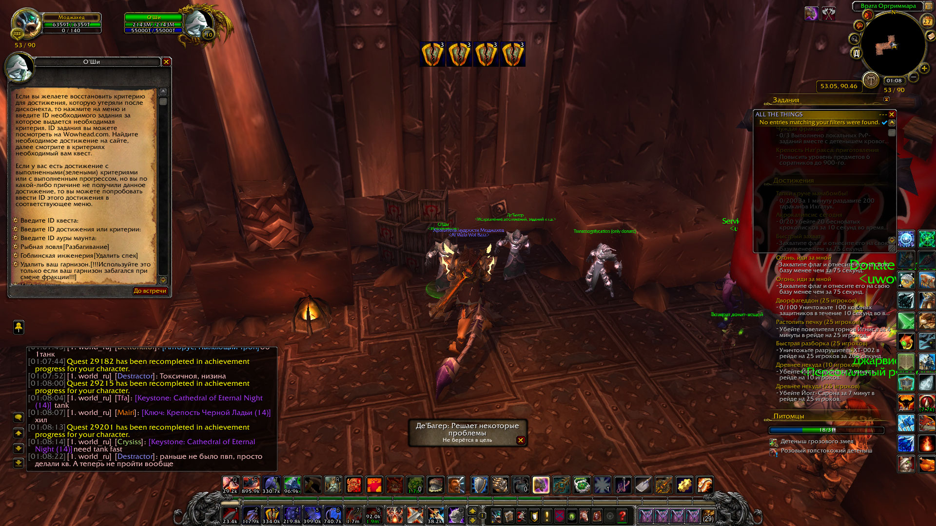 | Description | Не работает достижение https://ru.wowhead.com/achievement=5859/%D0%BD%D0%B0%D1%81%D0%BB%D0%B5%D0%B4%D0%B8%D0%B5-%D0%BB%D0%B8%D0%B0%D1%80%D1%8B#comments из-за отсутствующего NPC https://ru.wowhead.com/npc=53881/%D0%B0%D0%B9%D0%BB%D0%B0-%D1%82%D0%B5%D0%BC%D0%BD%D0%B0%D1%8F-%D0%B1%D1%83%D1%80%D1%8F | ||||