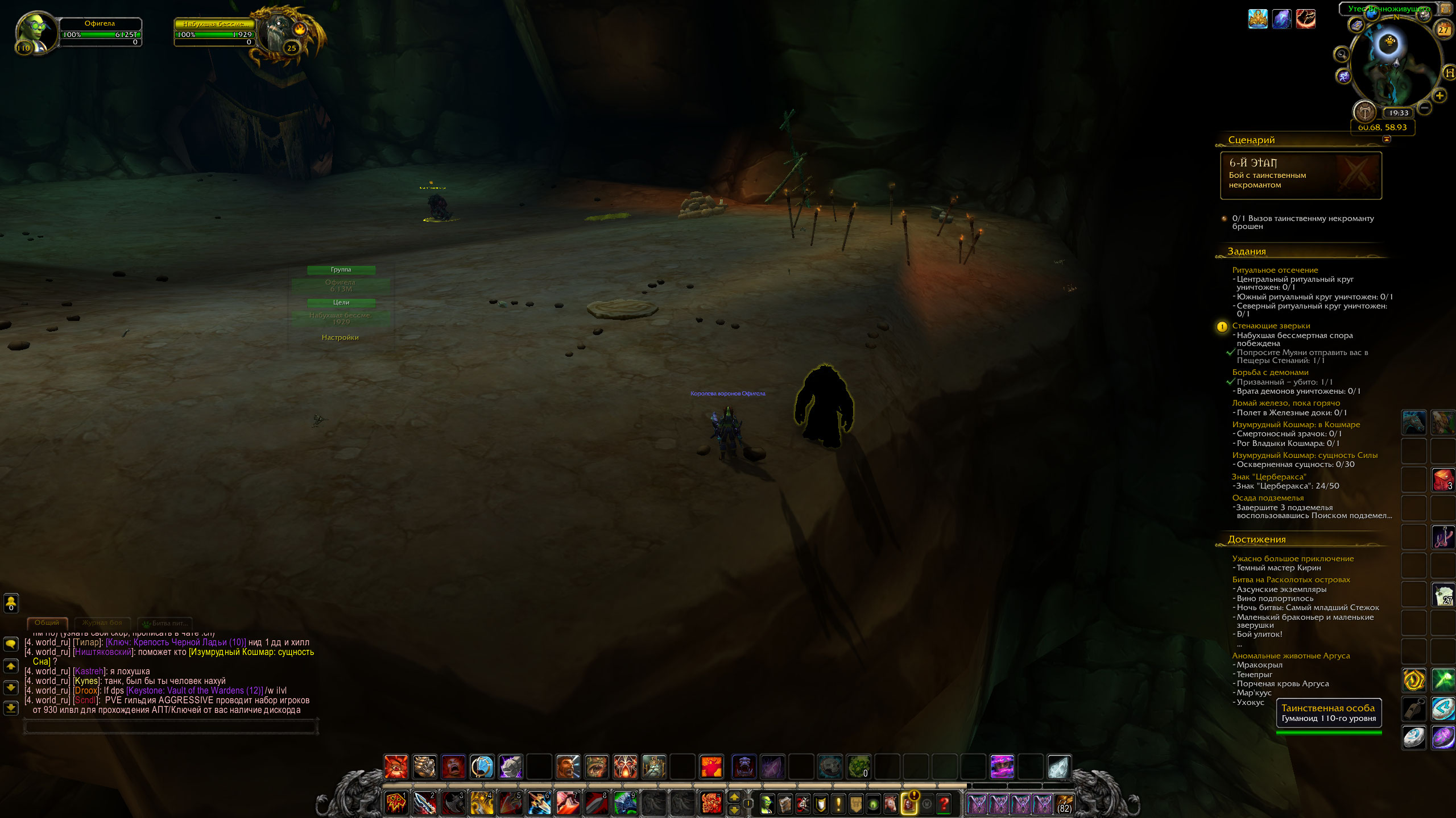 Добрый день. Шестой этап починили, сценарий работает полностью. Ачиву не засчитывает, виклика нет, телепорт сбрасывает после рестарта, не уверен но по идее квест https://ru.wowhead.com/quest=45423/%D1%81%D1%82%D0%B5%D0%BD%D0%B0%D1%8E%D1%89%D0%B8%D0%B5-%D0%B7%D0%B2%D0%B5%D1%80%D1%8C%D0%BA%D0%B8 должен быть одноразовым - а после прохожденя виклик раз в неделю у нас же после рестарта опять его предлагает. |