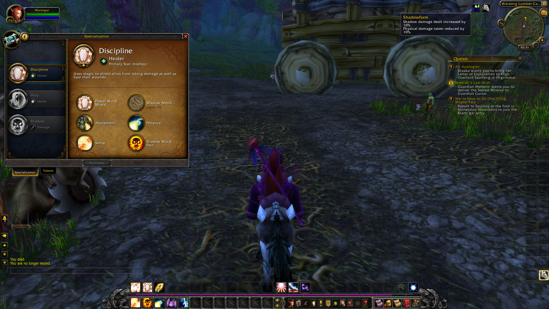 | Description | So, I was playing with my Discipline priest, and tried out other Specializations. I didn't like them, so I returned to Discipline. Now from time to time, Shadowform will activate, while still having Discipline active. It is not a big deal, but begins to bother me. | ||||