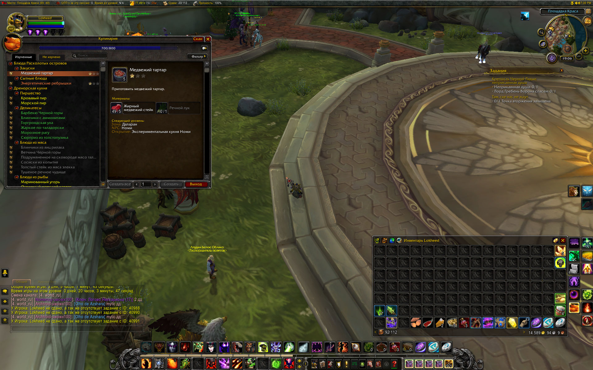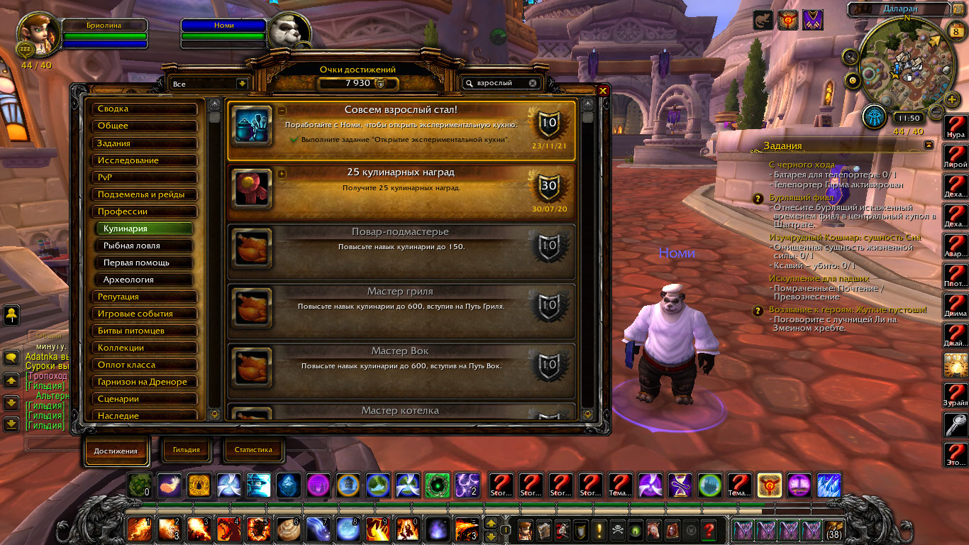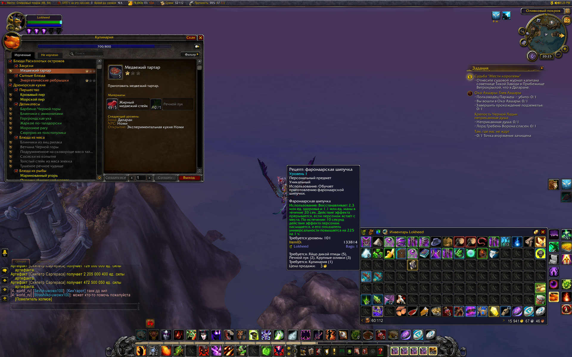 Добыты еще два рецепта в Азсуне. На месте получения рецептов Номи не появился. По прибытии в Даларан Номи не появился. Побегал по Даларану - таверна, банк, оплот варлока, площадка Краса - Номи не появился. Сделал релог, из оплота выбросило к полетке. Но зато появился Номи и выдал первый квест цепочки. В общем, Номи бегал за мной по Даларану и после завершения цепочки квестов на кулинарию и после активации заказа у Номи на исследование. Исчез только после еще одного релога. надеюсь навсегда. Скрины прилагаю. p.s. Опять заметил старый баг. https://ru.wowhead.com/quest=40991/%D0%BE%D1%82%D0%BA%D1%80%D1%8B%D1%82%D0%B8%D0%B5-%D1%8D%D0%BA%D1%81%D0%BF%D0%B5%D1%80%D0%B8%D0%BC%D0%B5%D0%BD%D1%82%D0%B0%D0%BB%D1%8C%D0%BD%D0%BE%D0%B9-%D0%BA%D1%83%D1%85%D0%BD%D0%B8#comments у нас в описании квеста указана награда https://ru.wowhead.com/item=133846/%D1%80%D0%B5%D1%86%D0%B5%D0%BF%D1%82-%D0%BD%D0%B0%D1%80%D0%B5%D0%B7%D0%BA%D0%B0-%D0%B8%D0%B7-%D1%81%D1%83%D1%88%D0%B5%D0%BD%D0%BE%D0%B9-%D1%81%D0%BA%D1%83%D0%BC%D0%B1%D1%80%D0%B8%D0%B8 , а после выполнения начальных критериев появляется еще один в сумке должен быть тот же https://ru.wowhead.com/item=133846/%D1%80%D0%B5%D1%86%D0%B5%D0%BF%D1%82-%D0%BD%D0%B0%D1%80%D0%B5%D0%B7%D0%BA%D0%B0-%D0%B8%D0%B7-%D1%81%D1%83%D1%88%D0%B5%D0%BD%D0%BE%D0%B9-%D1%81%D0%BA%D1%83%D0%BC%D0%B1%D1%80%D0%B8%D0%B8 . Тогда как в описании квеста на вовхеде ни о чем таком не упоминается. И без того, чтобы купить у Номи рецепт на 2 звезды https://ru.wowhead.com/item=133846/%D1%80%D0%B5%D1%86%D0%B5%D0%BF%D1%82-%D0%BD%D0%B0%D1%80%D0%B5%D0%B7%D0%BA%D0%B0-%D0%B8%D0%B7-%D1%81%D1%83%D1%88%D0%B5%D0%BD%D0%BE%D0%B9-%D1%81%D0%BA%D1%83%D0%BC%D0%B1%D1%80%D0%B8%D0%B8 , невозможно забрать пробную стряпню, и соответственно, сдать квест. |