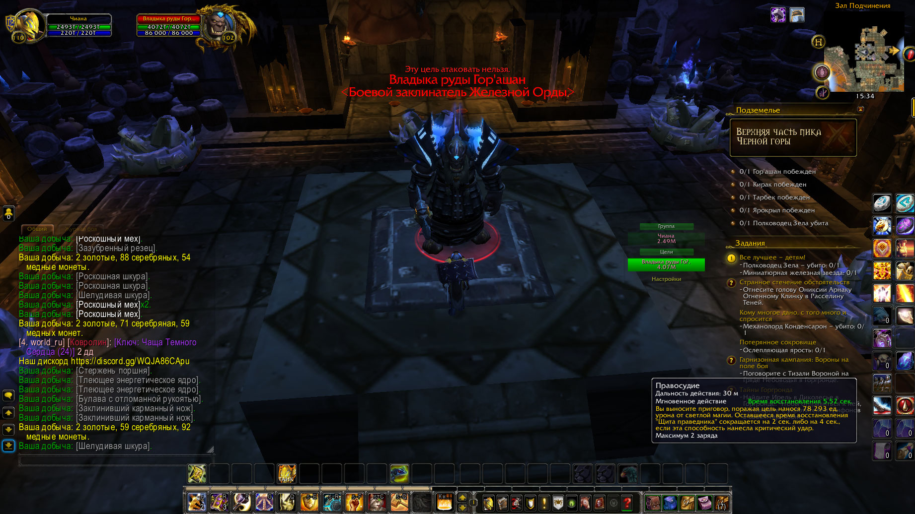 | Description | После деактивации всех ловушек босс Владыка Руды Гор`ашан остаётся неактивным, атаковать невозможно. Дальнейшее прохождение инстанса невозможно Проблема есть во всех трёх режимах (обычный, героический, эпохальный) | ||||