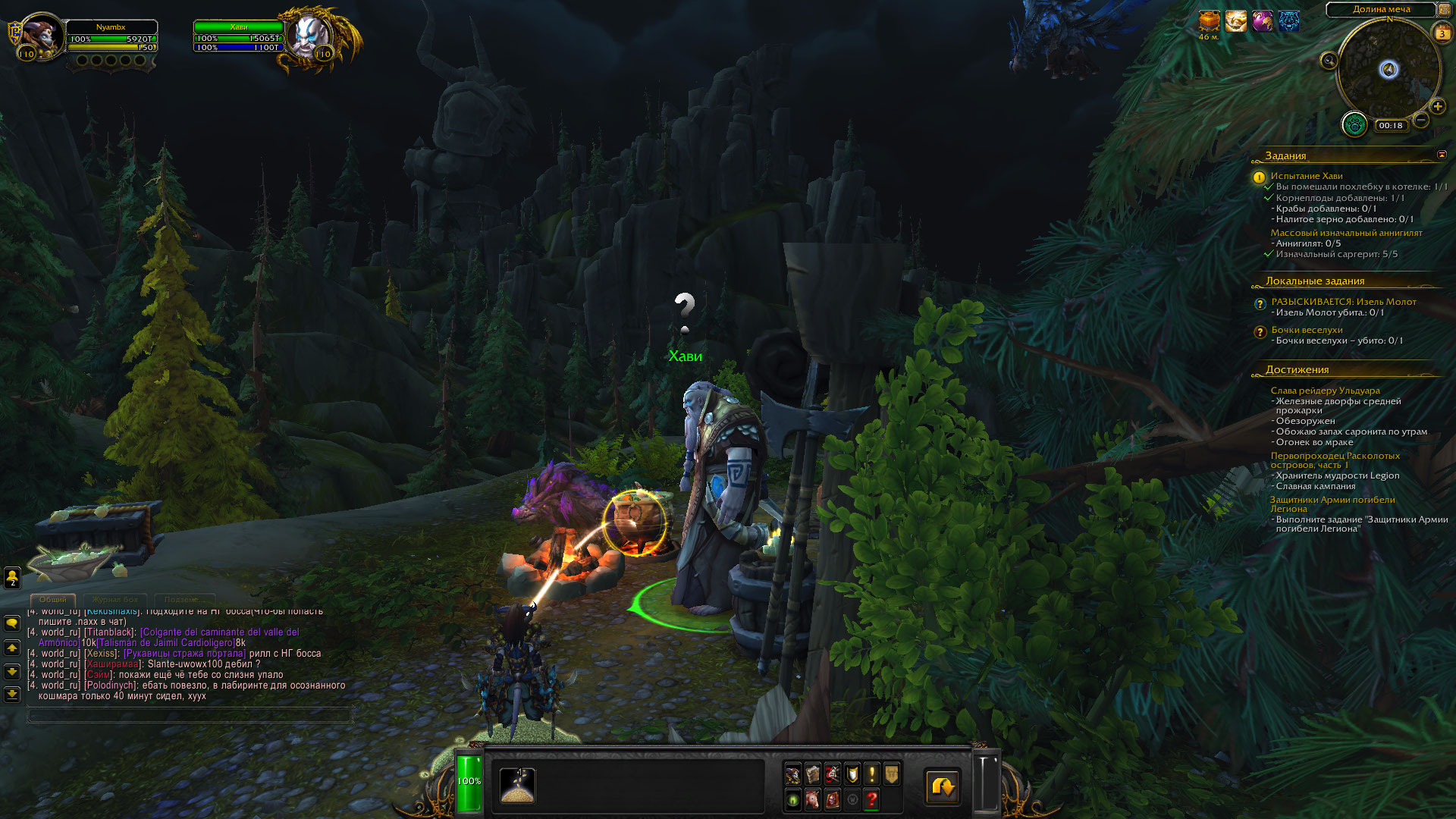 С квестом Испытание Хави есть небольшие сложности. Но не у всех, не всегда. И временами разные. Квест построен как минисценарий. То есть выполняется в специальной фазе. И если что то зависает, выкидывает игрока далеко в море. Это сложный вариант бага. А простой - невозможно навести прицел на котел. Мне помогало следующее - сел на вехикл (все равно какой, зерно, крабы или морковка), покрутил линией прицела. если получается наводиться на котел - покидал итем, чуть меняя прицел выше/ниже. Не получается навестись - выпрыгнул из вехикла (кнопочка над панелями кнопок) и снова залез. Появится нормальный прицел, получится навестись. Иногда еще и появляется возможность сдвигаться по горизонтали и подъехать близко к котлу. Ну там понятно - в упор застрелить котел намного проще. как то так вот. Бага, полностью блокирующего возможность выполнить и сдать этот квест я ни разу не поймал. А Штормхейм я делал уже 16-18 персонажах. |