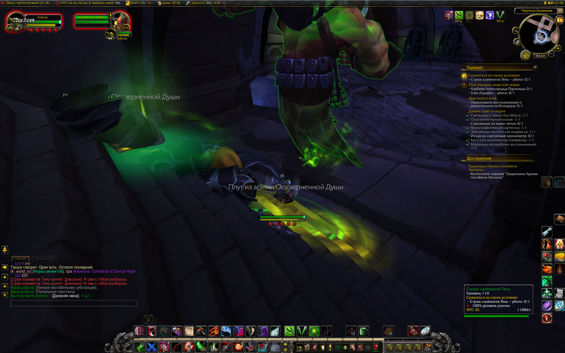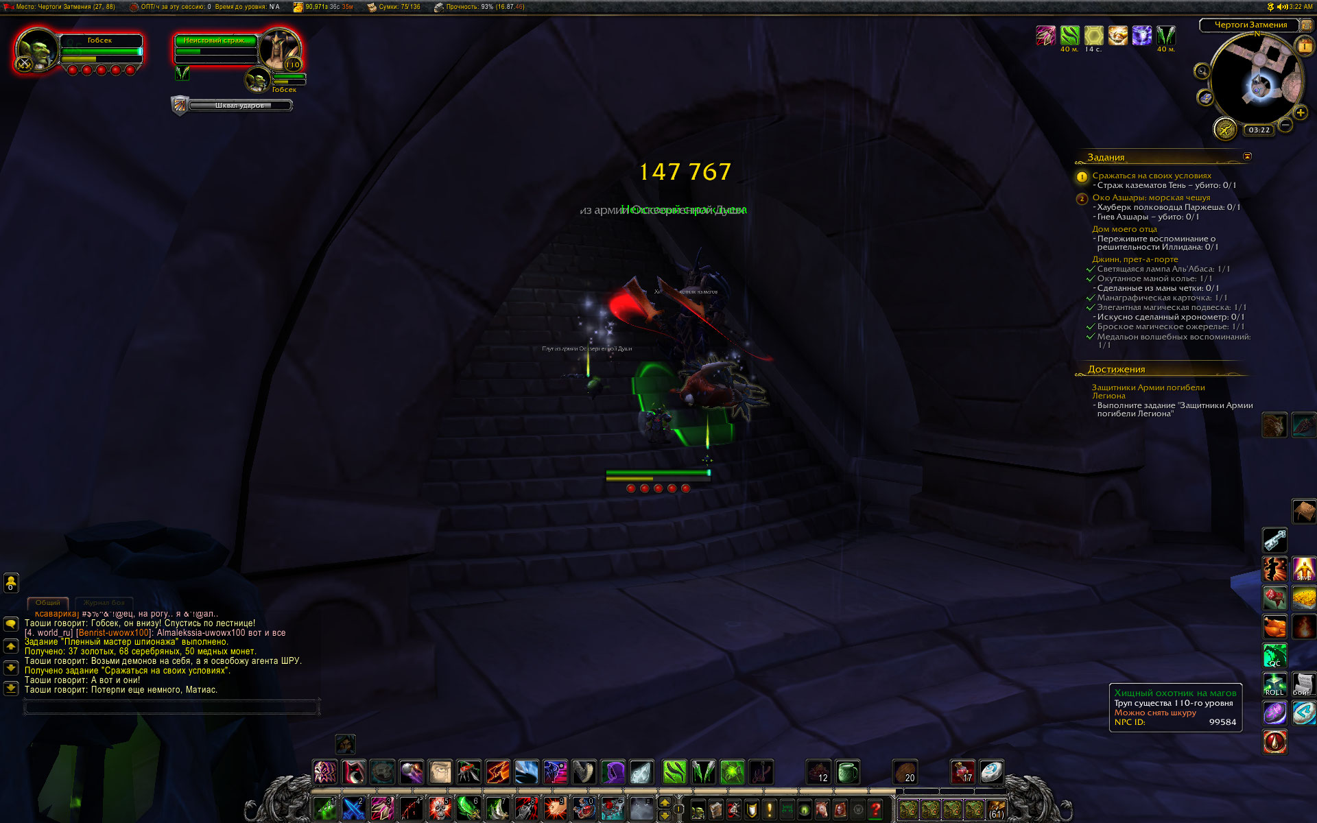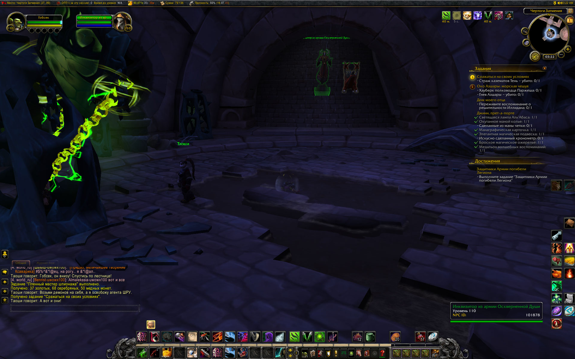| Description | Кампания разбойника, квест https://ru.wowhead.com/quest=37666/%D1%81%D1%80%D0%B0%D0%B6%D0%B0%D1%82%D1%8C%D1%81%D1%8F-%D0%BD%D0%B0-%D1%81%D0%B2%D0%BE%D0%B8%D1%85-%D1%83%D1%81%D0%BB%D0%BE%D0%B2%D0%B8%D1%8F%D1%85 по квесту нужно убить несколько волн мобов. Мобы спавнятся дружелюбными (зелеными), но их можно атаковать спеллами, наносящими атаку по области, яды также наносят урон. | ||||
