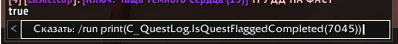 | Description | После выполнения квеста "Пастбища Дымного Леса благодарят тебя! : 7045" на почту в течение 1-2 дней по идее, должна прийти игрушка. Но проблема в том что квеста "Кража угощения Зимнего Покрова : 7042" нету. По итогу нельзя получить ачивку, из-за того что игрушка просто не приходит, из-за не выполненной цепочки. | ||||