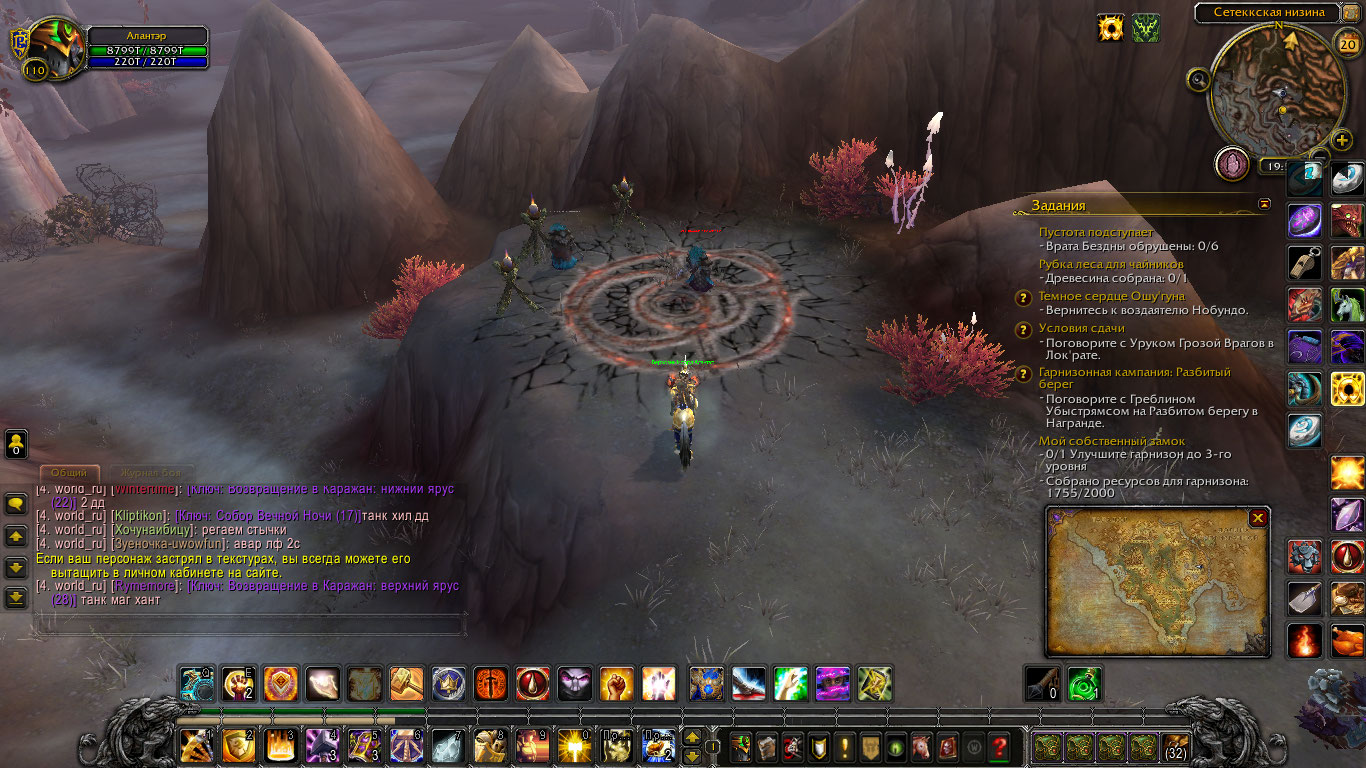 | Description | Данный квест главный в цепочке на Пике Арака, на дополнение Warlords of Draenor. https://ru.wowhead.com/quest=35003/%D1%80%D0%B8%D1%82%D1%83%D0%B0%D0%BB%D1%8C%D0%BD%D0%BE%D0%B5-%D0%BE%D1%82%D1%81%D0%B5%D1%87%D0%B5%D0%BD%D0%B8%D0%B5 Проблема в том, что данные круги ритуальные уже разрушены. Видно в прилагаемом скриншоте. Прошу исправить. Ачивки висят. | ||||