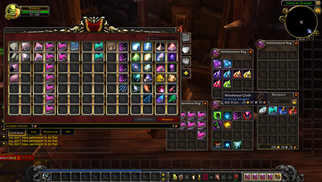 | Steps To Reproduce | Just check my char ( Bradesku, level 2 horde orc warrior, Legion x5 realm) and test it interacting with the guild bank. | ||||